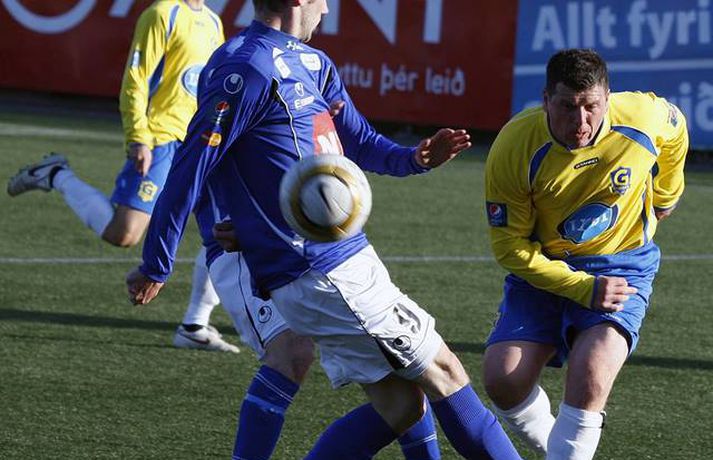 Fyrsti sigur Stjörnumanna á teppinu í sumar - myndir Óskar Ófeigur Jónsson skrifar 7. júní 2011 08:00 Halldór Orri Björnsson fagnar marki sínu í gær. Mynd/Stefán Mörk frá Garðari Jóhannssyni og Halldóri Orra Björnssyni með tveggja mínútna millibili í fyrri hálfleik tryggðu Stjörnumönnum 2-1 sigur á Grindavík á teppinu í Garðabænum í gær. Stjörnumenn höfðu gert jafntefli í fyrstu tveimur heimaleikjum sínum í Pepsi-deildinni en lönduðu þarna góðum sigri sem stimplar þá inn í efri hluta deildarinnar fyrir EM-fríið. Stefán Karlsson, ljósmyndari Fréttablaðsins og Vísis, var á leiknum á Garðabænum í gærkvöldi og náði þessum skemmtilegu myndum. Myndirnar má sjá í albúminu hér að neðan. Hægt er að sjá myndirnar stærri með því að smella á þær. Pepsi Max-deild karla Mest lesið „Ég hélt ég myndi deyja“ Enski boltinn „Enginn vildi að ég myndi vinna“ Sport Klúðraði gullgreininni sinni: „Ég er enn í áfalli“ Sport Hetjuleg barátta dugði ekki gegn heimsmeisturunum Handbolti Þungarokkið þaut áfram en á eftir að kaupa afmælisgjöf handa konunni Sport Senda samúðarkveðjur eftir að nánir vinir Joshua létust í banaslysinu Sport Nottingham Forest vill fá að heyra samtöl dómaranna Enski boltinn Fór grátandi upp á sjúkrahús eftir fall stuttu fyrir ÓL Sport Ekki góð ferð til Rómarborgar í kvöld Fótbolti Mennirnir sem létust voru þjálfarar og nánir vinir Anthony Joshua Sport Fleiri fréttir Enn kvarnast úr liði Blika Leið Víkings að titlinum rifjuð upp í kvöld Þjálfar 2. flokk samhliða því að spila fyrir KR Færeysk landsliðskona til liðs við ÍBV Býst ekki við að spila aftur fyrir landsliðið Kynntu Sigurð á slaginu sex á aðfangadag Heyrði hvorki frá Blikum né Víkingum Úr Bestu heim í Hauka „Þetta er stærsti klúbbur Íslands“ Sagan ekki sönn: „Veit ekki hvaðan þetta á að hafa komið“ Meira en 37 stöðugildi hjá Knattspyrnusambandi Íslands Óskar Hrafn um komu Arnórs Ingva: „Gífurlega dýrmætt fyrir KR“ Arnór Ingvi orðinn leikmaður KR Breiðablik kaupir Jónatan frá Norrköping Elías mættur til meistaranna KR sagt vera að landa Arnóri Ingva Hilmar Árni til starfa hjá KR Segir fjórðung í bók Óla ósannan Víkingur í úrslit Bose-bikarsins eftir sigur „Verið heiður að spila í appelsínugulu með frábærum liðsfélögum“ Þekkir Egilshöllina vel og skoraði gegn fyrrum félögum Strákar Heimis Guðjóns fengu slæman skell í fyrsta leik Axel verður áfram hjá Aftureldingu Kveður pabba sinn í Laugardalnum og fer til FH „Félag sem var í basli með að ná endum saman og greiða laun á réttum tíma“ Skrýtið og taktlaust: „Ég er ekkert sátt með niðurstöðuna“ Fanndís kveður sviðið: „Ég er búin að fella nokkur tár“ Gylfi með tvö og Víkingar byrja á sigri Frá Akureyri til Danmerkur Markadrottningin heldur að landsliðið sé búið spil Sjá meira