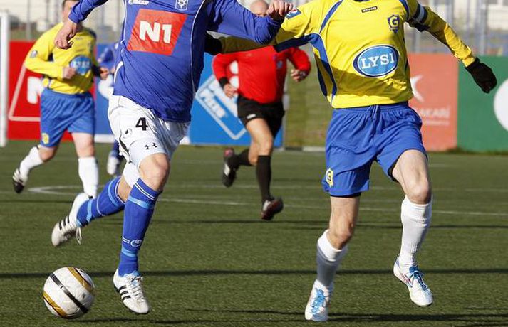 Mörk frá Garðari Jóhannssyni og Halldóri Orra Björnssyni með tveggja mínútna millibili í fyrri hálfleik tryggðu Stjörnumönnum 2-1 sigur á Grindavík á teppinu í Garðabænum í gær. Stjörnumenn höfðu gert jafntefli í fyrstu tveimur heimaleikjum sínum í Pepsi-deildinni en lönduðu þarna góðum sigri sem stimplar þá inn í efri hluta deildarinnar fyrir EM-fríið. Stefán Karlsson, ljósmyndari Fréttablaðsins og Vísis, var á leiknum á Garðabænum í gærkvöldi og náði þessum skemmtilegu myndum. Myndirnar má sjá í albúminu hér að neðan. Hægt er að sjá myndirnar stærri með því að smella á þær.