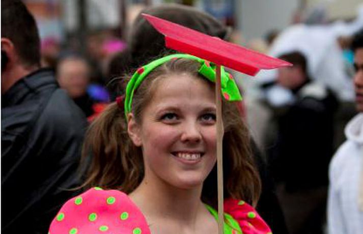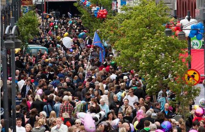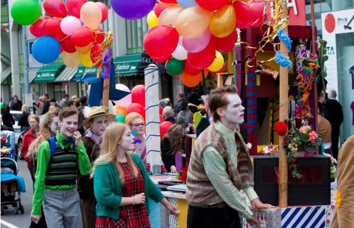 Borgin bókstaflega blómstraði í dag þegar fagurmáluð andlit, full af gleði, virtust á hverju götuhorni. Viðamikil dagskrá var um alla borg og mátti sjá sirkusfólk á stultum, klifurgarpa og ungar stúlkur í skautbúningum. Haraldur Guðjónsson ljósmyndari var á ferðinni í allan dag og í meðfylgjandi myndasafni hér að neðan má líta afrakstur dagsins. Þar kennir ýmissa grasa og ljóst að þeir sem heima sátu fá hér stemninguna beint í æð. Með því að smella á myndbandið hér efst er síðast hægt að fylgja Hugrúnu Halldórsdóttur, fréttamanni Stöðvar 2, í bæjarferð.Mynd Haraldur Guðjónsson