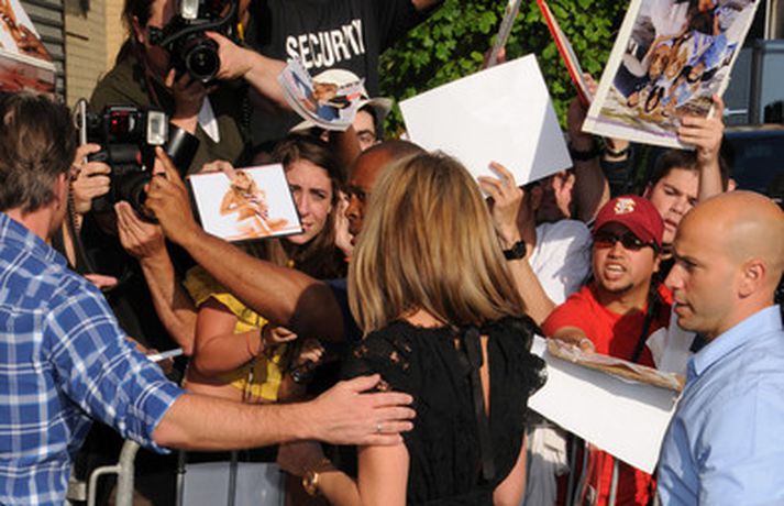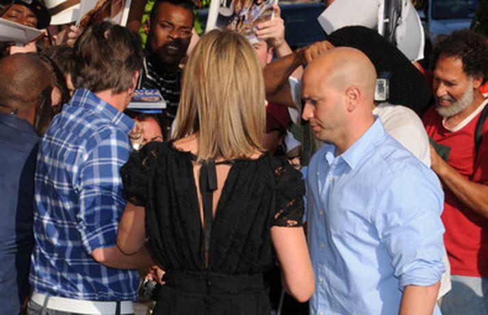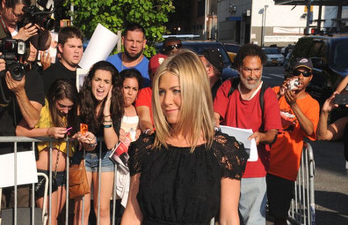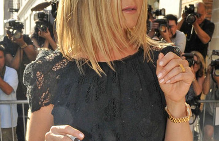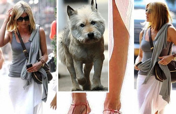 Ef meðfylgjandi myndir eru skoðaðar gaumgæfilega má greinilega sjá að leikkonan Jennifer Aniston, 42 ára, er komin með nýtt húðflúr innan á hægri fótlegg. Þar hefur nafn hundsins hennar, Norman, sem dó í síðasta mánuði, verið húðflúrað með tengiskrift sem virðingavottur af hennar hálfu. Þá má sjá Jennifer klædda í svartan kjól með nýjan hring á leið í sjónvarpsviðtal, hundinn Norman og Justin Theroux, nýja kærastann hennar sem getur ekki hætt að monta sig, ímyndaalbúmi.Skoða myndirnar hér.