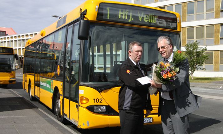 Hefur ekið strætó í fjörutíu ár 27. júní 2011 15:37 MYND/Heimasíða innanríkisráðuneytisins Jónas Engilbertsson strætóbílstjóri náði þeim áfanga í síðustu viku að hafa ekið strætisvagni í 40 ár. Ögmundur Jónasson ráðherra samgöngumála, heiðraði Jónas af því tilefni en einnig var hann heiðraður af Starfsmannafélagi Reykjavíkurborgar. Á heimasíðu innanríkisráðuneytisins kemur fram að Ögmundi hafi fundist tilhlýðilegt að taka á móti Jónasi er hann kom úr þeirri ferð sem markaði þennan áfanga. „Jónas hefur þannig sinnt almenningssamgöngum í þessa fjóra áratugi og hefur án efa upplifað ýmsar breytingar á strætisvögnunum, umferðinni í Reykjavík og ferðavenjum fólks þennan tíma,“ segir ennfremur. Mest lesið Setur „stærsta samning í sögunni“ í uppnám Erlent Karólína Helga skákaði sitjandi oddvita í Hafnarfirði Innlent Önnur stúlka með móður sinni þegar Högni var klófestur Innlent Líkir kærunni við „faglega aftöku“ Innlent Evrópuleiðtogar bregðast við: „Við látum ekki fjárkúga okkur“ Erlent Segir þúsundir hafa dáið á grimmilegan máta Erlent Myndir: Þúsundir mótmæltu á Grænlandi Erlent Ekki útilokað að Ísland sæti Grænlandstollum Erlent Einn endaði á hliðinni og þrjú klemmdust á milli Innlent „Í mínum huga eru þetta klárar ærumeiðingar“ Innlent Fleiri fréttir Heimsmálin, Grænland, menntun og fjölmiðlun á Sprengisandi Karólína Helga skákaði sitjandi oddvita í Hafnarfirði Ísland standi með Grænlandi og Danmörku Vonar að skólarnir verði frjálsir frá símum í haust Álagning aldrei hærri: Eldsneytisverð hefði átt að lækka enn frekar Líkir kærunni við „faglega aftöku“ „Vegferð ákæruvaldsins til skammar“ Menntamálaráðherra tekur yfir hjúkrunarheimilin Fjögur handtekin á Akureyri grunuð um innbrot Viðvarandi óvissuástand bitni á langtímaáætlunum fyrirtækja Einn endaði á hliðinni og þrjú klemmdust á milli Var í símanum við neyðarlínuna þegar ekið var aftan á hann Ákvörðunin á ábyrgð stjórnenda Icelandair en ekki flugmanna „Hef hvergi hallað réttu máli“ Önnur stúlka með móður sinni þegar Högni var klófestur Fá þau að vera aftur á lista með Hildi? Fimm bíla árekstur á Reykjanesbraut og tveir fluttir á slysadeild Eigum eftir að sjá hvort Guðbrandur bæti upp fyrir hegðun sína Umfangsmikil lögregluaðgerð við Glerárgötu á Akureyri Öryrkjar eru með hærri laun en eldri borgarar Borgarstjóri fór með rangt mál Gagnrýnin hugsun skipti máli Krafa um að Margrét Löf verði gerð arflaus fer fyrir Landsrétt Hófu niðurrif á félagsheimilinu í leyfisleysi: „Skaðinn er skeður“ Fjórir slást um oddvitasæti Viðreisnar Afsögn þingmanns, hótanir Trumps og í beinni frá Svíþjóð Mun hærri dánartíðni og meiri örorka hjá fyrrum vöggustofubörnum „Í mínum huga eru þetta klárar ærumeiðingar“ Vilja Laugardalshöll líkt og þeim var lofað Kviknaði í Svarta sauðnum í Þorlákshöfn Sjá meira