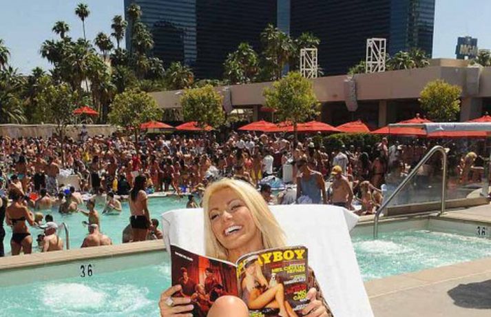 Brúðkaupi Playboy-kóngsins Hugh Hefner, 85 ára, og fyrirsætunnar Crystal Harris, 25 ára, sem fagnar skælbrosandi í myndasafni, var aflýst á dögunum. Hugh sjálfur opinberaði fréttina á samskiptasíðunni Twitter með eftirfarandi skilaboðum:„Brúðkaupinu er aflýst. Crystal skipti um skoðun." Brúðkaupið átti að fara fram 18. júní og hafði 300 gestum verið boðið í veisluna í Playboyhöllinni í Los Angeles. Vefmiðillinn TMZ greindi frá því að Hugh og Crystal hefðu rifist heiftarlega og hún flutt út í kjölfarið. Þær fréttir ganga nú um vefmiðlana að Crystal sé tekin saman við jafnaldra sinn Jordan McGraw, sem er yngsti sonur sjónvarpssálfræðingsins dr. Phil McGraw. Í meðfylgjandi myndasafni á sjá Crystal pósa skælbrosandi við sundlaugarbakka í Las Vegas sama dag og brúðkaupið átti að eiga sér stað, með Playboy blaðið með henni léttklæddri á forsíðunni, og það sem betra er, - endanlega laus við ellismellinn.