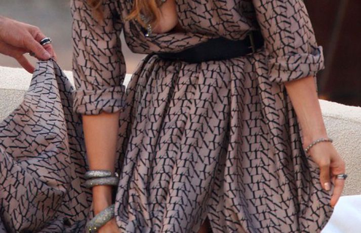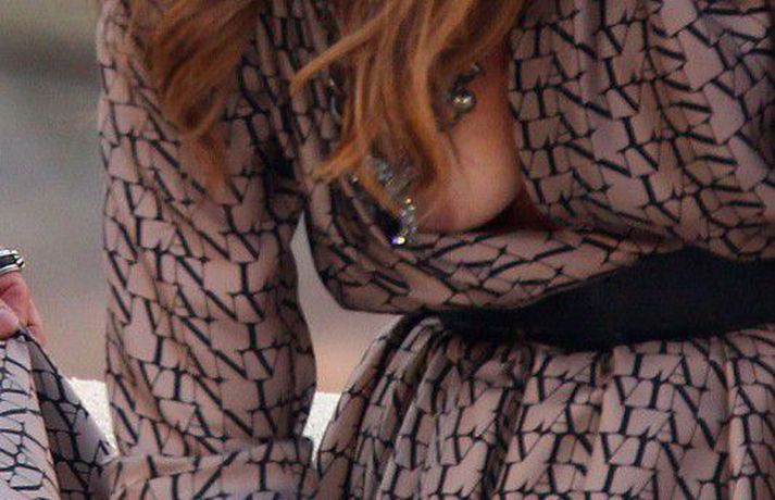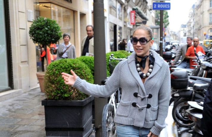 Hægri geirvartan á söngkonunni og American Idol dómaranum Jennifer Lopez, 41 árs, lét ljós sitt skína í þýskum sjónvarpsþætti um helgina eins og sjá má á myndunum. Þá má einnig sjá Jennifer versla í París á föstudaginn var í myndasafni. Þá má geta þess að dómarinn eyðir um það bil 300 þúsund dollurum á ári í eðalkampavínið Christal.