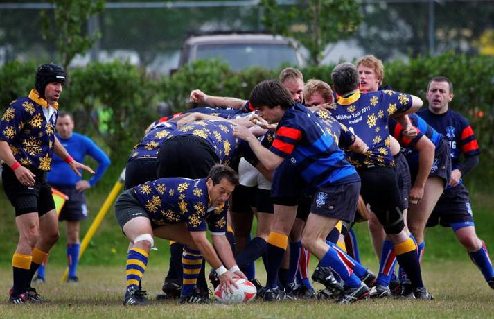 Fyrsti opinberi Rugby leikurinn sem fram hefur farið hér á landi var leikinn á Valsvellinum að Hlíðarenda í gær. Rugby félag Reykjavíkur tók á móti Thunderbird Old Boys frá Bandaríkjunum og var Vilhelm Gunnarsson ljósmyndari Fréttablaðsins á staðnum og tók meðfylgjandi myndir. Lið Thunderbird er skipað fyrrum nemendum við Thunderbird skólann í Phoenix og ferðast milli landa til að keppa í Rugby. Rugby félag Reykjavíkur var stofnað fyrr á þessu ári en liðsmenn félagsins höfðu æft að kappi í rúmt ár fyrir leikinn í dag. 40 íþróttamenn eru virkir í félaginu hér á landi og leikurinn í dag var sá fyrsti þar sem 15 keppendur eru í hvoru liði. Leikar fóru á þann veg að Rugby félag Reykjavíkur sigraði með 45 stigum gegn 26.