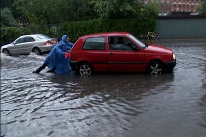 Vatnið enn til vandræða í Köben 4. júlí 2011 08:18 Búist er við áframhaldandi umferðartöfum í Kaupmannahöfn í dag eftir skýfallið á laugardaginn en þá rigndi meira í borginni en í manna minnum. Stræti og torg borgarinnar breyttust í læki og stöðuvötn og á örfáum klukkutímum rigndi meira en gert hefur síðustu mánuði. Í dag er ekki búist við jafn miklu úrhelli þótt eitthvað gæti rignt en götur í borginni eru enn margar hverjar lokaðar fyrir bílaumferð. Þá eru lestarferðir til og frá borginni enn ekki komnar í samt lag og er mikið um tafir og að ferðir falla niður. Mest lesið Samþykktu aldrei að Sanna fengi oddvitasætið Innlent Minnir á hvernig Hitler komst til valda Innlent Hættur að hugsa bara um frið fyrst hann fékk ekki Nóbelinn Erlent „Þarf að klára að setja slaufu á pakkann“ Innlent Þjóðverjar yfirgefa Grænland Erlent Fann kattarhræ í margnota poka úti í hrauni Innlent Danir máttlausir gagnvart rússnesku ógninni í 20 ár Erlent „Blasir við að íslenskt launafólk var svikið“ Innlent Tala látinna hækkar í lestarslysinu á Spáni Erlent Ekki rétta leiðin að kynda undir læsisstríð Innlent Fleiri fréttir Býður Pútín sæti í „friðarráði“ fyrir Gasaströndina Hættur að hugsa bara um frið fyrst hann fékk ekki Nóbelinn Tala látinna hækkar í lestarslysinu á Spáni Danir máttlausir gagnvart rússnesku ógninni í 20 ár Rúmlega tuttugu látnir eftir árekstur tveggja hraðlesta Boðar leiðtogaráðið á aukafund vegna hótana Trumps Brýndi fyrir Trump að tollun hans væri „röng“ Þjóðverjar yfirgefa Grænland Ræddi við Trump: „Hlakka til að sjá hann“ Hervæddur hvunndagurinn í Nuuk Átta látnir á einum degi vegna snjóflóða Miklar sviptingar í Sýrlandi Gríðarleg vonbrigði og mikið áhyggjuefni Tollahótanir Trump gætu hrundið af stað uggvænlegri atburðarás Nóbelsnefndin afdráttarlaus varðandi framsal verðlaunapeninga Vilja beita „ofurvopni“ ESB gegn Bandaríkjunum Hundruð hermanna í viðbragðsstöðu vegna Minnesota Myndir: Þúsundir mótmæltu á Grænlandi Segir þúsundir hafa dáið á grimmilegan máta Setur „stærsta samning í sögunni“ í uppnám Evrópuleiðtogar bregðast við: „Við látum ekki fjárkúga okkur“ Macron: „Engin ógnun eða hótun mun hafa áhrif á okkur“ Ekki útilokað að Ísland sæti Grænlandstollum Þyrfti líklega að leggja toll á allt Evrópusambandið Reyna að rjúfa nettenginu endanlega Boðar 10 prósenta toll á Norðurlönd, Breta, Frakka, Þjóðverja og fleiri Þúsundir baula á bandaríska sendiherrann Ítalir lögðu hald á skip frá Rússlandi Enn deilt um Epstein-skjölin: Dómsmálaráðuneytið segir dómara ekki mega skipa óháðan eftirlitsaðila Bein útsending: Flytja fimm þúsund tonna eldflaug á skotpall fyrir tunglskot Sjá meira