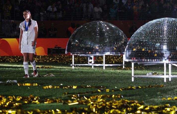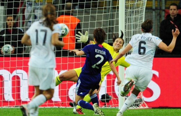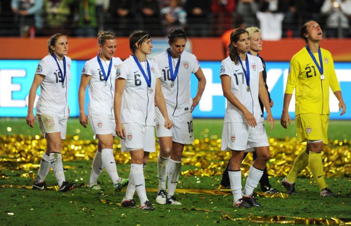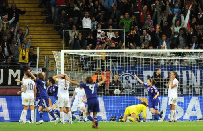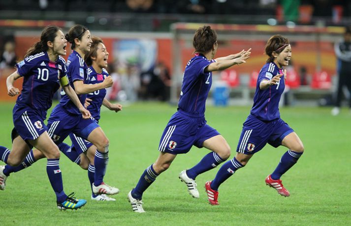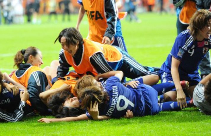 Japan varð heimsmeistari í knattspyrnu kvenna eftir að hafa sigrað Bandaríkin í úrslitaleik mótsins. Jafnt var eftir venjulegan leiktíma 1-1 og grípa þurfti til framlengingar. Í framlengingunni skoruðu liðin sitt markið hvort og liðin þurftu því að fara í vítaspyrnukeppni. Myndirnar má sjá í albúminu hér að neðan. Hægt er að sjá myndirnar stærri með því að smella á þær. Myndirnar eru teknar frá myndasafni AFP.
