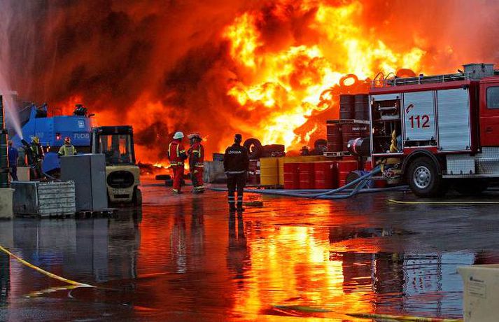 Gríðarmikill eldur í Sundahöfn Gríðarlega mikill eldur kviknaði í dekkjum á svæði Hringrásar á fjórða tímanum í nótt. Allt tiltækt lið slökkviliðsins hefur verið kallað út og berst við eldinn. Segjum nánar frá eins skjótt og fréttir berast. Gríðarlega mikill eldur kviknaði í dekkjum á svæði Hringrásar á fjórða tímanum í nótt. Allt tiltækt lið slökkviliðsins hefur verið kallað út og berst við eldinn. Segjum nánar frá eins skjótt og fréttir berast. 12. júlí 2011 04:06
