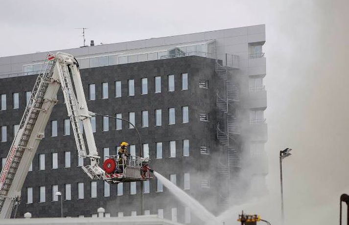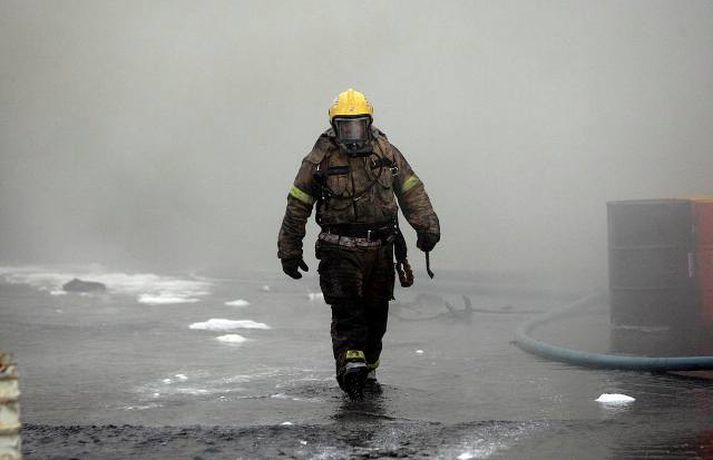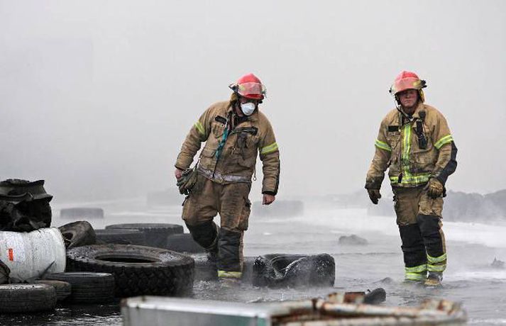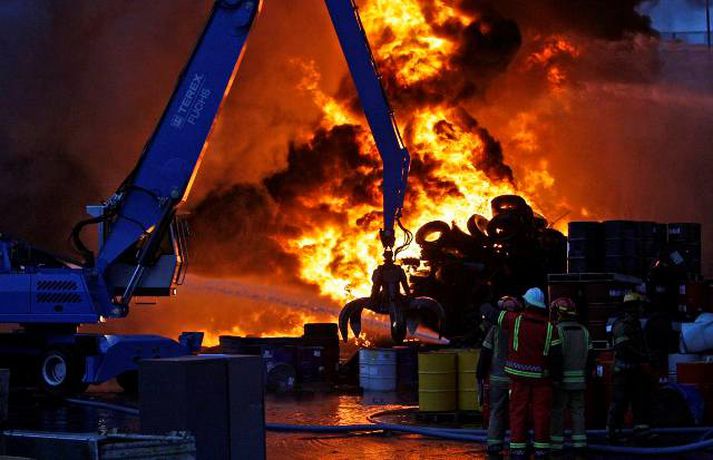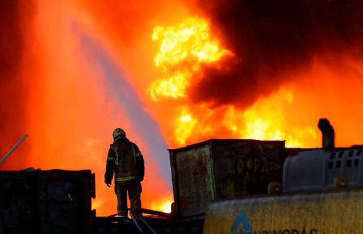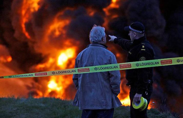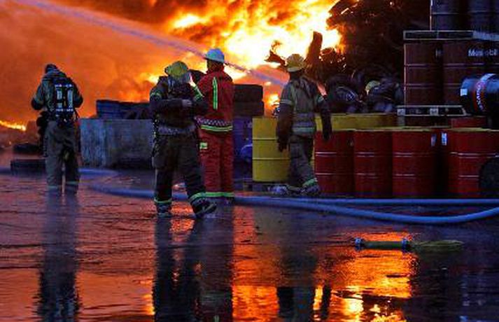 Myndasyrpa frá Hringrásarbrunanum 12. júlí 2011 09:57 Mynd/Vilhelm Gunnarsson Mikill eldur gaus upp í stórri dekkjastæðu á athafnasvæði Hringrásar við Sundahöfn á þriðja tímanum i nótt og var allt slökkvilið á höfuðborgarsvæðinu kallað út auk manna á frívakt. Gríðar mikinn og svartan reyk lagði frá eldinum, en svo vel vildi til að vindur var suðaustlægur í nótt og lagði reykinn á haf út, en ekki yfir byggðina eins og gerðist í samskonar bruna á sama stað árið 2004. Þá þurftu á sjötta hundrað manns að yfirgefa heimili sín. Starfsmenn fréttastofu stóðu vaktina í nótt og í morgun og í meðfylgjandi myndaalbúmi má sjá myndir sem Vilhelm Gunnarsson, ljósmyndari Fréttablaðsins og Vísis, tók.Ekki þurfti að rýma hús Samhæfingastöð almannavarna í Skógarhlíð var mönnuð í nótt vegna brunans, en vegna hagstæðrar vindáttar var ekki almannavarnaástandi lýst yfir og ekki þurfti að rýma nein hús. Íbúar á Kleppsvegi hafa verið hvattir til að halda gluggum lokuðum þó svo að reyk leggi ekki yfir hverfið þar sem lyktarmengun er talsverð. Haft var samband við forráðamenn fyrirtækja á iðnaðarsvæðinu við Klettagarða og nágrenni og þeir hvattirtil að loka fyrir loftræstingu. 60 manna lið slökkviliðsins sprautaði mikilli kvoðu á eldinn og undir morgun kom slökkviliðsbíll frá Reykjavíkurflugvelli með viðbótar kvoðu, en slökkvibíll frá Keflavíkurflugvelli var sendur á Reykjavíkruflugvöll á meðan. Búið er að slökkva eldinn en búist er við að slökkviliðsmenn verði langt fram eftir morgni að drepa endanlega í glæðum.Minni eldsmatur en í brunanum 2004 Jón Viðar Matthíasson, slökkviliðsstjóri, segir í samtali við Vísi að aðalástæða þess að mun betur gekk nú en fyrir fimm árum sé að eldsmatur hafi verið mun minni núna en var þá. Einnig sé búið að gera breytingar á svæðinu. Búið sé að steypa upp skilveggi á milli þeirra efna sem geymd séu á svæðinu. Engan slökkviliðsmann sakað í aðgerðunum. Eldsupptök eru með öllu ókunn, en rannsókn getur ekki hafist af fullum krafti fyrr en að slökkvistarfi loknu. Tengdar fréttir Gríðarmikill eldur í Sundahöfn Gríðarlega mikill eldur kviknaði í dekkjum á svæði Hringrásar á fjórða tímanum í nótt. Allt tiltækt lið slökkviliðsins hefur verið kallað út og berst við eldinn. Segjum nánar frá eins skjótt og fréttir berast. Gríðarlega mikill eldur kviknaði í dekkjum á svæði Hringrásar á fjórða tímanum í nótt. Allt tiltækt lið slökkviliðsins hefur verið kallað út og berst við eldinn. Segjum nánar frá eins skjótt og fréttir berast. 12. júlí 2011 04:06 Enn barist við eldinn "Það er verið að berjast við þetta. Það er allt tiltækt lið á staðnum og jafnframt var aukamannskapur kallaður út. Þeir eru að vinna í þessu,“ segir slökkviliðsmaður sem Vísir talaði við í nótt. Eldur kviknaði á svæði Hringrásar í Sundahöfn um fjögurleytið í nótt. 12. júlí 2011 04:31 Slökkvistarf gengið greiðlegar en 2004 Mun greiðlegar hefur gengið að ráða niðurlögum eldsins í Hringrás núna en árið 2004, segir Jón Viðar Matthíasson, slökkviliðsstjóri hjá slökkviliðinu á höfuðborgarsvæðinu. Hann segir að aðalástæðan sé sú að eldsmatur sé mun minni núna en var þá. 12. júlí 2011 07:49 Eldurinn hefur minnkað Slökkviliðsmenn virðast hafa náð tökum á eldinum. Hann er miklu minni en hann var fyrr í morgun, segir Vilhelm Gunnarsson ljósmyndari Fréttablaðsins sem stendur vaktina við Hringrás í Sundahöfn. 12. júlí 2011 05:19 Íbúar í Kleppsholti loki gluggum Slökkvilið höfuðborgarsvæðisins hefur náð tökum á eldi sem logað hefur á Hringrásarsvæðinu frá því á þriðja tímanum í nótt. Tölverðan reyk leggur frá svæðinu. Vindáttin er enn af landi og reyk leggur út á haf. Íbúar í Kleppsholti eru beðnir um að hafa glugga lokaða þó svo að reyk leggi ekki yfir hverfið þar sem lyktarmengun er talsverð, að því er fram kemur í tilkynningu frá almannavörnum. 12. júlí 2011 07:14 Aðgerðarstjórn kölluð saman í Samhæfingarmiðstöðina Aðgerðarstjórn höfuðborgarsvæðisins var kölluð saman í Samhæfingarstöðina í Skógarhlíð í morgun vegna eldsins hjá Hringrás í Sundahöfn. Almannavarnaástandi hefur ekki verið lýst yfir en starfsmenn stöðvarinnar eru í viðbragðsstöðu. 12. júlí 2011 06:09 Mest lesið Segir af sér þingmennsku vegna tilraunar til vændiskaupa Innlent Safna undirskriftum og segja Þorgerði að taka Long opnum örmum Innlent Tók við verðlaunapeningnum og hyggst eiga hann Erlent Loðin svör gervigreindar sem brjóti gegn höfundarrétti: „Engin þakklæti til stofnunarinnar“ Innlent Taki ásökunum alvarlega og skipi Signýju til bráðabirgða Innlent Hér sést hvar jarðgöngin eiga að opnast á Heimaey Innlent Hafi afhent Trump Friðarverðlaun Nóbels Erlent Andstæðan við lóðabrask Innlent Yfir 350 milljónir í kostnað vegna starfslokasamninga hjá ríkisstofnunum Innlent Dómari skapað hættulegt fordæmi fyrir ofbeldismenn Innlent Fleiri fréttir Yfir 350 milljónir í kostnað vegna starfslokasamninga hjá ríkisstofnunum Segir af sér þingmennsku vegna tilraunar til vændiskaupa Andstæðan við lóðabrask Taki ásökunum alvarlega og skipi Signýju til bráðabirgða Safna undirskriftum og segja Þorgerði að taka Long opnum örmum Loðin svör gervigreindar sem brjóti gegn höfundarrétti: „Engin þakklæti til stofnunarinnar“ Hér sést hvar jarðgöngin eiga að opnast á Heimaey Dómari skapað hættulegt fordæmi fyrir ofbeldismenn Fjöldi kynferðisbrota í fyrra heldur yfir meðaltali Borgin segir upp leigusamningi og 54 barna leikskóla að óbreyttu lokað Finnur vill oddvitasæti VG í Reykjavík og bjóða fram með öðrum flokkum Ólga