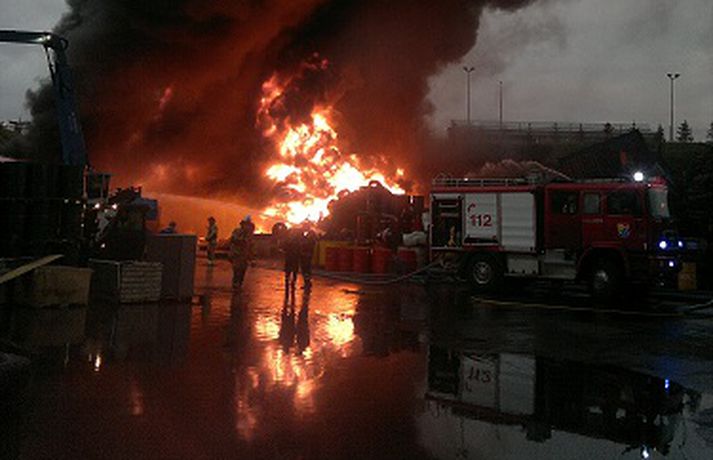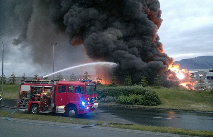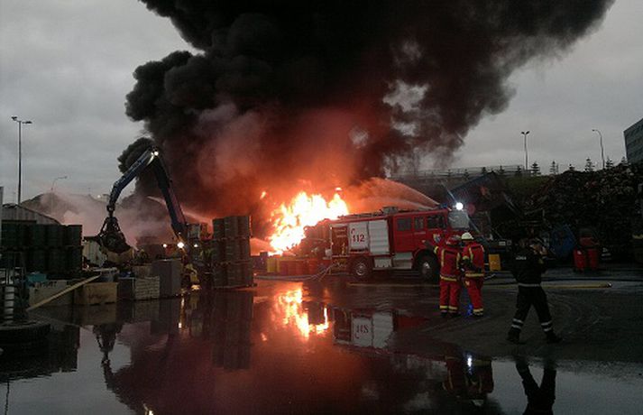 Gríðarmikill eldur í Sundahöfn Jón Hákon Halldórsson skrifar 12. júlí 2011 04:06 Mikinn reyk leggur frá eldinum. Gríðarlega mikill eldur kviknaði í dekkjum á svæði Hringrásar um þrjúleytið í nótt. Allt tiltækt lið slökkviliðsins hefur verið kallað út og berst við eldinn. Segjum nánar frá eins skjótt og fréttir berast. Hér að neðan getur þú séð myndir af brunanum og slökkvistörfum sem Vilhelm Gunnarsson tók. Mest lesið Nokkur fjölbýlishús í ljósum logum Erlent Fegin að komast lífs en með stórt sár á sálinni Innlent Með lögregluna á hælunum með fullan BMW af kókaíni Innlent Staðfesta sextán ára dóm Dagbjartar Innlent Foráttuveður í kortunum Innlent Svarar til saka því barn í hans umsjá komst í hlaupbangsa Innlent Grunaður um að byrla konum svo þær migu á sig í starfsviðtali Erlent „Það er búið að vera steinpakkað“ Innlent Sagði Campbell´s „gjörunninn“ mat fyrir „fátækt fólk“ Erlent Aldrei auglýstur sem íbúafundur fyrir Grafarvog og Kjalarnes Innlent Fleiri fréttir Fegin að komast lífs en með stórt sár á sálinni Grindvíkingar fá orðið, hálkuslys og frestun barneigna „Það er búið að vera steinpakkað“ Þakkar fjölmiðlaumfjöllun að grænt ljós fékkst „Fullkomið hneyksli“ ef Alþingi veitti Daða Má skattlagningarvald Vísuðu þremur frá Keflavíkurflugvelli Sóttvarnarlæknir gegnir embætti landlæknis tímabundið Semur um DNA-próf til að koma í veg fyrir ólöglegan flutning barna Staðfesta sextán ára dóm Dagbjartar Páll áfram í leyfi en leggur fyrirhugaðri nýrri stofnun lið Ekki hægt að treysta mælum vélarinnar þar sem afísunarvökvinn fraus Þekktu efnin enn þau vinsælustu Formaður Afstöðu vill á lista Samfylkingarinnar Andstaða almennings hvati til að búa vel um hnútana Búast við að mál lögmannsins verði fellt niður Ráðherra ræðir laxeldi í Mjóafirði og sprautusjúklingum fer fækkandi Þráhyggjuhegðunin staðið í fjórtán ár Losna við nágranna eftir þriggja ára baráttu Auknar líkur á kvikuhlaupi en óvissa um hvenær gýs næst Svarar til saka því barn í hans umsjá komst í hlaupbangsa Með lögregluna á hælunum með fullan BMW af kókaíni Skipti mestu máli að halda góðri rútínu í svartasta skammdeginu Hanna Katrín boðar sjókvíaeldi í Mjóafirði Skipuð framkvæmdastjóri Menntasjóðs námsmanna Aldrei auglýstur sem íbúafundur fyrir Grafarvog og Kjalarnes Einn af hverjum fimm „erlendum sérfræðingum“ er Íslendingur Ákærður fyrir tilraun til manndráps í Reykjanesbæ Vilja fá konur í mæðravernd sama hvernig þær fæða börn sín Lögmaðurinn neitar sök og kærir til Landsréttar Ríki misskilningur um hegðun heimilislausra Sjá meira