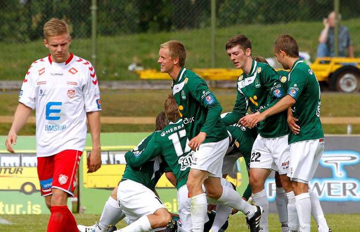 Myndaveisla af Kópavogsvelli Kolbeinn Tumi Daðason skrifar 10. júlí 2011 16:15 Breiðablik lagði Þór 4-1 í blíðskaparveðri í Kópavogi í gær. Sigurinn var gott veganesti fyrir Blika sem mæta Rosenborg í forkeppni Meistaradeildar Evrópu í knattspyrnu á miðvikudag. Pjetur Sigurðsson ljósmyndari Fréttablaðsins og Vísis var á vellinum.Blikar fögnuðu mörkum sínum vel í gærMynd/Pjetur Pepsi Max-deild karla Mest lesið Åge Hareide látinn Fótbolti „Er því miður kominn í jólafrí“ Handbolti Davíð sendir hjartnæma kveðju til Hareide Fótbolti Útilokar ekki breytingar: „Er klárlega að líta í kringum mig“ Körfubolti Í fyrsta sinn rukkað inn á Fan Zone á HM Fótbolti Körfuboltakvöld: Tilþrif tímabilsins til þessa Körfubolti Svona endaði Sambandsdeildin: Finnarnir áfram eftir jafntefli við Palace Fótbolti Dagskráin í dag: Píla og Álftanes með nýjan þjálfara Sport „Svo lengi sem það er ekki jákvæð og góð umfjöllun um okkur erum við sáttir“ Körfubolti „Ánægður að spila ekki betur en þetta en vinna samt“ Körfubolti Fleiri fréttir Víkingur í úrslit Bose-bikarsins eftir sigur „Verið heiður að spila í appelsínugulu með frábærum liðsfélögum“ Þekkir Egilshöllina vel og skoraði gegn fyrrum félögum Strákar Heimis Guðjóns fengu slæman skell í fyrsta leik Axel verður áfram hjá Aftureldingu Kveður pabba sinn í Laugardalnum og fer til FH „Félag sem var í basli með að ná endum saman og greiða laun á réttum tíma“ Skrýtið og taktlaust: „Ég er ekkert sátt með niðurstöðuna“ Fanndís kveður sviðið: „Ég er búin að fella nokkur tár“ Gylfi með tvö og Víkingar byrja á sigri Frá Akureyri til Danmerkur Markadrottningin heldur að landsliðið sé búið spil Strákarnir í 2. flokki Vals þeir einu sem ekki spila fyrir áramót Dæturnar vildu norður: „Mun alltaf gera allt fyrir þær“ Stjarnan sækir markvörð í 3. deildina „Ég var orðinn algjörlega bugaður“ Jónatan áfram á Hlíðarenda: „Var alltaf jákvæður fyrir því að framlengja“ Óli Jó kallar ráðninguna á Jóa Kalla algjört bull „Ég elska þig Ísland, takk fyrir allt!“ Sextán ára með fernu fyrir meistara Víkings Valur dregur sig úr Bose-bikarnum „Sagði bara við hann: Djöfulsins fíflið þitt“ Yngir upp í allt of gamalli deild Þróttur keypti Adam Árna frá Grindavík Ástæðan fyrir því að Þorlákur hætti: „Ég var ekki hrifinn af þessu“ Þorlákur sagði upp störfum hjá ÍBV Þrjár ungar KR-konur leggja skóna á hilluna Murielle elti Óskar í Garðabæinn Segir dökk ský yfir íslensku knattspyrnuhreyfingunni Rúnar sækir gamlan félaga sinn inn í þjálfarateymið Sjá meira