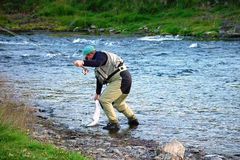 Þrátt fyrir flóð þar sem 2-3 dagar nánast duttu út í veiði er laxveiðin núna fjórföld í Breiðdalsá miðað við sama tíma í fyrra eða komin strax í 75 laxa. Bara í gær komu 18 laxar og lax að hellast inn, aðallega stórlax en þó strax komnir smálaxar í bland sem lofar góðu. Stærstu fiskar eru um 88 cm og almennt er allur laxinn í gríðarlega góðum holdum, t.d. mældist lax í gær sem var 88 cm að lengd en ummálið var 47 cm! Veiðin er vel dreifð um ánna en þó hefur Tinna verið einna gjöfulust. Þar var eftir hádegi í dag sett í sex laxa sem allir fóru af, þar einn dreki sem fór eftir 45 min baráttu og er veiðimaðurinn og gædinn sáu laxinn loks eftir langa viðureign var sporðblaðkan eins og á skóflublað sögðu þeir. Eru þeir þó ýmsu vanir í Breiðdalsá, enda hefur þessi veiðimaður fengið þar nokkra í 20 punda klassanum undanfarin ár.Glímt við einn stóran í Hrútu í veiðistaðnum BálkMynd af www.strengir.isHrútafjarðará hefur gefið á milli 20-30 laxa og flesta væna. Vatnið er gott að sögn veiðimanna þar og ekki eru líkur á vatnsleysi þar í sumar eins og svo oft áður, enda snjóalög með eindæmum mikil eftir kalt vor. Birt með góðfúslegu leyfi Strengja