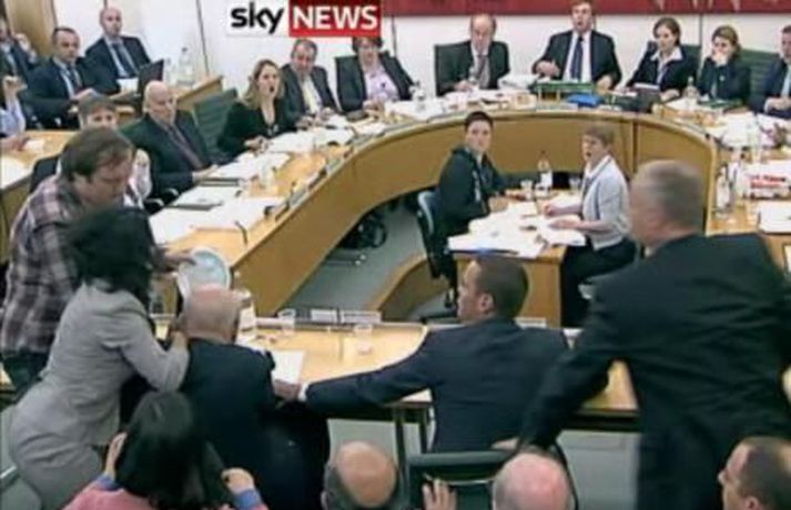Tengdar fréttir Ráðist á Murdoch við yfirheyrslur hjá þingnefndinni - myndband Ungur karlmaður réðist fyrir stundu á Rupert Murdoch þar sem hann sat fyrir svörum hjá breskri þingnefnd vegna hlerunarmálsins. 19. júlí 2011 16:14 Mest lesið Segir af sér þingmennsku vegna tilraunar til vændiskaupa Innlent „Þetta er ekki það sem við samþykktum“ Erlent Tók við verðlaunapeningnum og hyggst eiga hann Erlent „Lauslát mella“ hafi verið mildasta lýsingin á dómaranum Innlent Kolbeinn Tumi tekur við af Erlu Björgu Innlent Safna undirskriftum og segja Þorgerði að taka Long opnum örmum Innlent Hér sést hvar jarðgöngin eiga að opnast á Heimaey Innlent Eftirmaður Guðbrands í sjokki en klár í slaginn Innlent Telur viðbrögð Guðbrands rétt og skynsamleg Innlent Manneklan mest hjá skólum og frístundaheimilum sem tilheyra Austurmiðstöð Innlent Fleiri fréttir Hafa náð einu og hálfu prósenti af Úkraínu á þremur árum Milljónir Bandaríkjamanna hafi þungar áhyggjur vegna Grænlands Yfirvöld sögð rukka háar fjárhæðir fyrir afhendingu líka mótmælenda Fyrrverandi forseti dæmdur í fimm ára fangelsi „Þetta er ekki það sem við samþykktum“ Tók við verðlaunapeningnum og hyggst eiga hann Hafi afhent Trump Friðarverðlaun Nóbels Krefjast enn að fá að senda sérsveitarmenn til Mexíkó Veiki geimfarinn kominn aftur til jarðar Tóku enn eitt skipið Trump hótar að siga hernum á mótmælendur Kennir Selenskí enn og aftur um Ólafur Ragnar við CNBC: Afleiðingarnar „gífurlegar“ ef Bandaríkin tækju Grænland með valdi Þingmenn sem Trump sagði heimska lúffuðu Witkoff segir annan áfanga friðaráætlunarinnar hafinn Musk fellst á að hætta að framleiða kynferðislegar myndir en bara sums staðar Hætta vinnslu umsókna innflytjenda frá 75 ríkjum Trump segir stjórnvöld í Íran hætt að drepa mótmælendur Stuðningur við Grænland ómetanlegur og hvetur Íslendinga til að mæta Vilja geta sett herlög á eyju norðan Íslands Verðandi sendiherra grínaðist með að Ísland yrði 52. ríkið Síðustu ellefu ár þau hlýjustu í mælingasögunni 32 látnir eftir að krani féll á lest í Taílandi Rannsaka ásakanir á hendur Iglesias Sautján prósent Bandaríkjamanna styðja innlimun Grænlands Vaktin: Stofna vinnuhóp um framtíð Grænlands Tveir látnir eftir árekstur strætisvagna Reyna að tala Trump til og óttast afleiðingar árása Bandaríkjastjórn kemur barnaníðsefni Musk til varnar Mengunarreglur taka ekki lengur tillit til dauðsfalla og heilsu Sjá meira