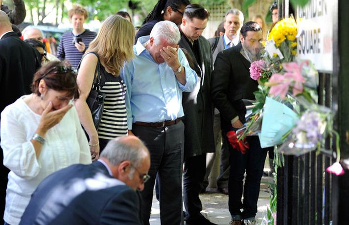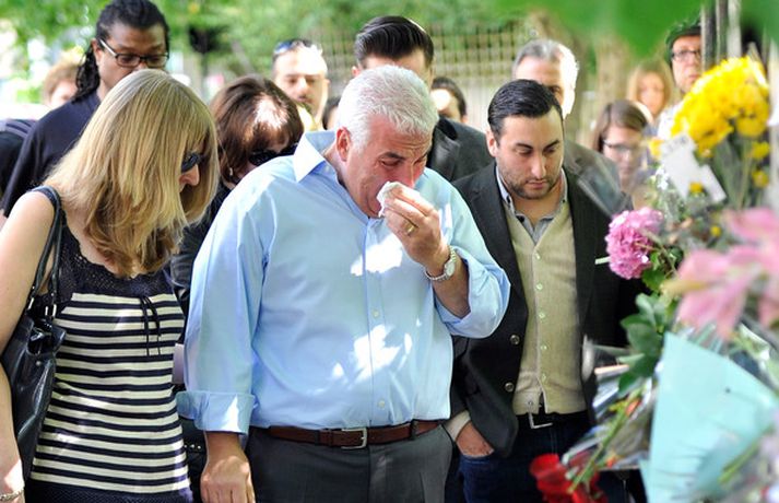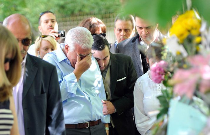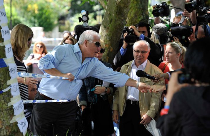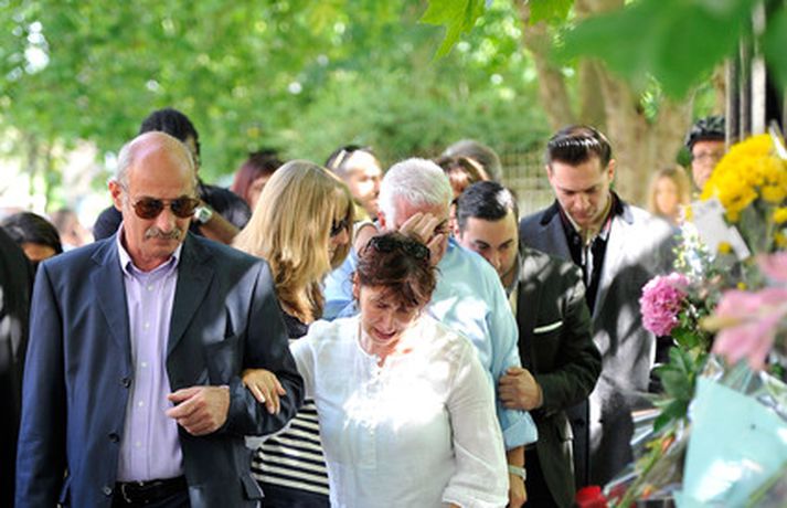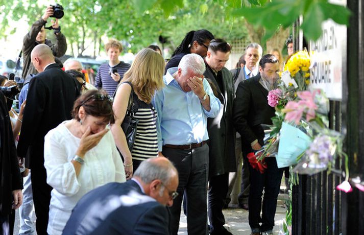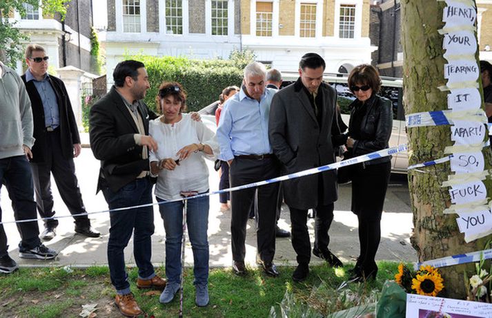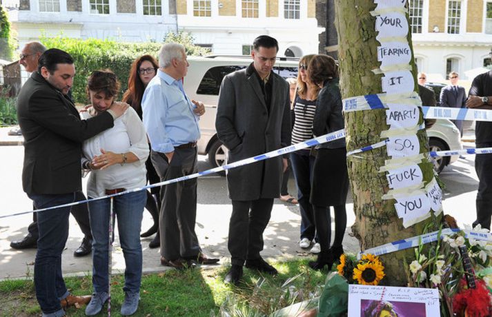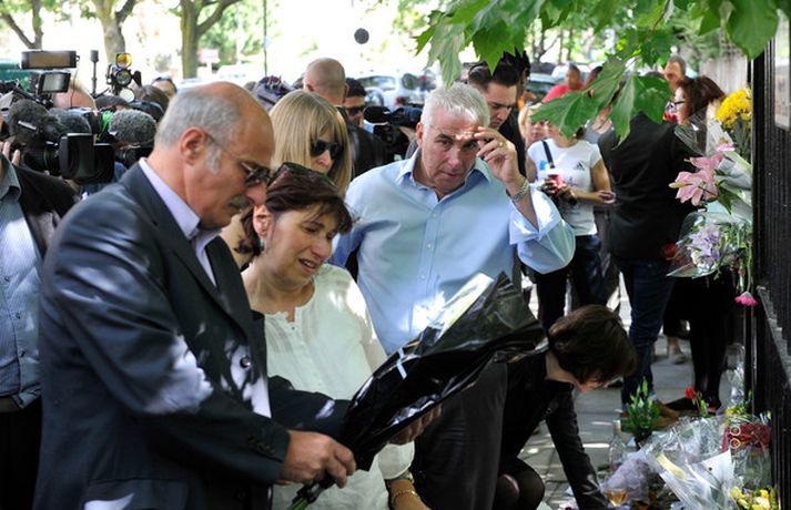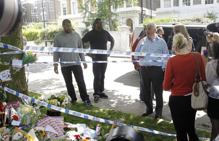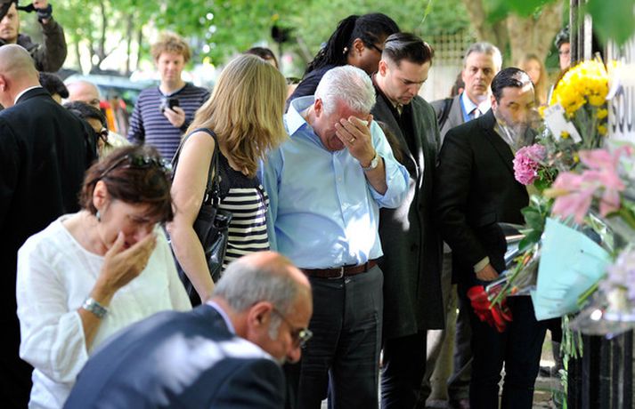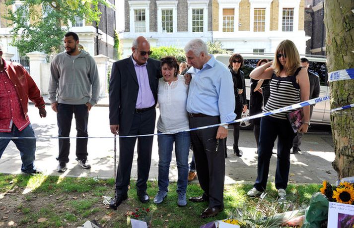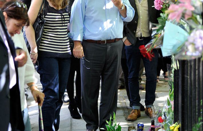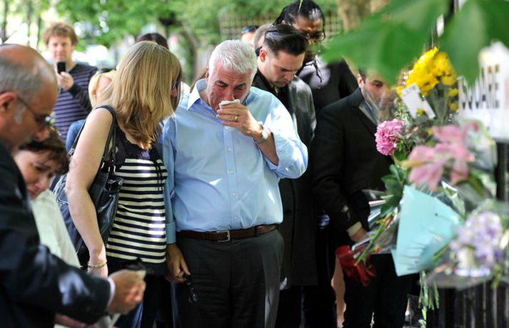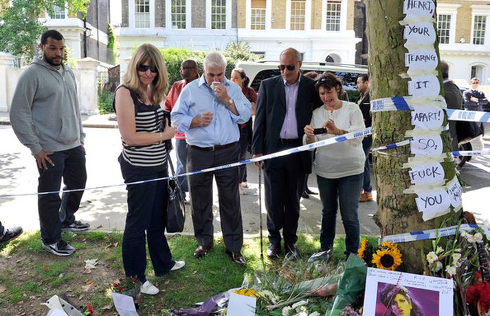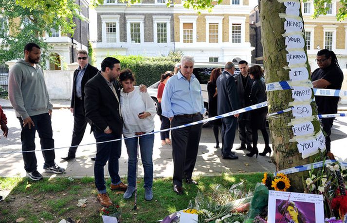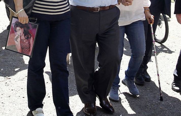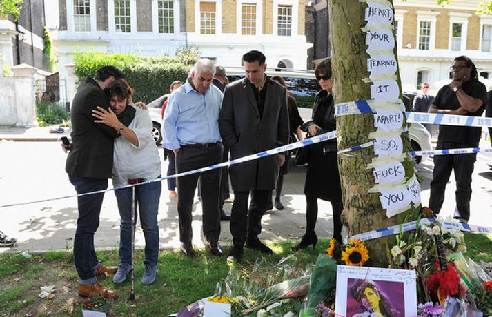 Mitch og Janis Winehouse voru mynduð fyrir utan heimili dóttur þeirra, söngkonunnar Amy Winehouse, sem lést nýliðna helgi aðeins 27 ára gömul. Mitch, sem er fyrrum leigubílstjóri, reyndi allt hvað hann gat til að halda aftur tárunum, en allt kom fyrir ekki, maðurinn brotnaði niður og brast í grát eins og móðir Amy þegar þau fóru í gegnum þúsundir samúðarkorta, blóma og gjafa frá aðdáendum söngkonunnar eins og sjá má á meðfylgjandi myndum. Amy snæddi með móður sinni daginn áður en hún féll frá. Það var Andrew Morris, lífvörður söngkonunnar, sem fann hana látna á heimili hennar. Þá má einnig sjá bróður Amy og fyrrverandi unnusta, Reg, í myndasafni.
