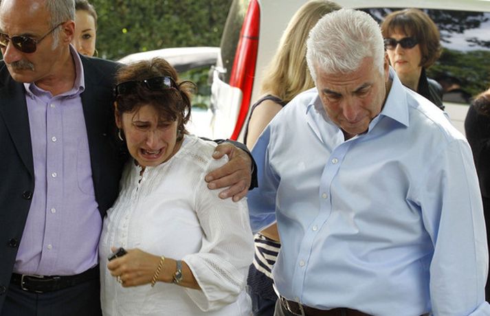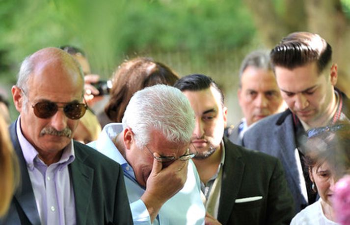 Niðurbrotnir foreldrar Winehouse 25. júlí 2011 20:00 Mitch og Janis Winehouse voru mynduð fyrir utan heimili dóttur þeirra, söngkonunnar Amy Winehouse, sem lést nýliðna helgi aðeins 27 ára gömul. Mitch, sem er fyrrum leigubílstjóri, reyndi allt hvað hann gat til að halda aftur tárunum, en allt kom fyrir ekki, maðurinn brotnaði niður og brast í grát eins og móðir Amy þegar þau fóru í gegnum þúsundir samúðarkorta, blóma og gjafa frá aðdáendum söngkonunnar eins og sjá má á meðfylgjandi myndum. Amy snæddi með móður sinni daginn áður en hún féll frá. Það var Andrew Morris, lífvörður söngkonunnar, sem fann hana látna á heimili hennar. Þá má einnig sjá bróður Amy og fyrrverandi unnusta, Reg, í myndasafni. Mest lesið Móðurmorð í blóðugu jólaboði Gagnrýni Græna gímaldið ljótast Menning Þegar Bardot fór í „leyniferðalag“ til Íslands Lífið Idris Elba sleginn til riddara fyrir baráttu gegn hnífaburði Lífið Stjörnulífið: „Ég get ekki frestað þessu lengur“ Lífið Von á barni með þeim nýja átta mánuðum eftir skilnaðinn Lífið „Hæ ástin mín, Nýtt í hverjum mánuði á fimmtudaginn, ertu laus?“ Áskorun Melanie Watson er látin Lífið Blysröð í anda þjóðhátíðar í stað brennu Lífið Íslenskur mágur Rex Heuermann efins um ódæði hans Lífið Fleiri fréttir Þegar Bardot fór í „leyniferðalag“ til Íslands Idris Elba sleginn til riddara fyrir baráttu gegn hnífaburði Blysröð í anda þjóðhátíðar í stað brennu Von á barni með þeim nýja átta mánuðum eftir skilnaðinn Spurt var um fólkið sem var grátandi, ælandi og öskrandi Kryddsíld fagnar afmæli og öllum er boðið Melanie Watson er látin Telur notkun á lagi í Miðflokks-stuðningsmyndbandi siðlausa Stjörnulífið: „Ég get ekki frestað þessu lengur“ Heldur ótrauð áfram þrátt fyrir að ná ekki milljónamarkmiðinu Brigitte Bardot er látin Glódís Perla og Kristófer gengu í það heilaga Bæði sorg og gleði að ala upp fimm börn með sérþarfir Sjálfur jólasveinninn skotspónn samsæriskenninga Þakkar Trump í ólettutilkynningunni Íslenskur mágur Rex Heuermann efins um ódæði hans Vinsælustu myndböndin á Vísi á árinu Frægir fjölguðu sér árið 2025 Gítarleikari The Cure er látinn Skilaði týndum heyrnartólum alla leið til Hamborgar Sjáðu nýja stiklu úr stjörnuprýddri hasarmynd Balta Ásgeir Kolbeins furðu lostinn yfir steini í jólapakkanum Viðtöl ársins 2025: Missir, afsögn ráðherra, umsáturseinelti og læknir sem þóttist vera með krabbamein Sat uppi með sex kíló af kæstri skötu Kristmundur Axel tók við af Bubba Seinfeld og Friends-leikari látinn Jólagjafir íslenskra vinnustaða Deildar meiningar um lyktina: „Þetta er byrjendaskata“ Fréttamenn gæða sér á skötu í gegnum árin Laufey á landinu Sjá meira