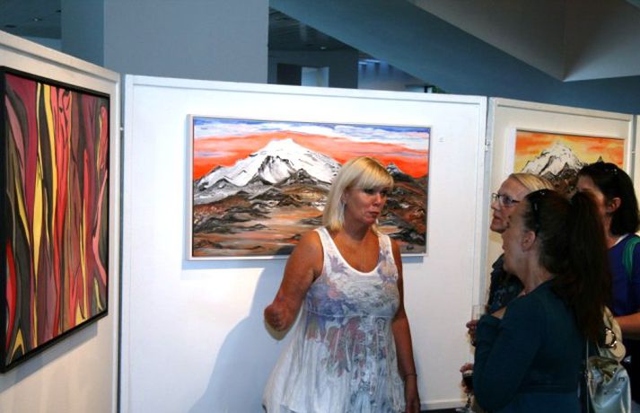Eygló Gunnþórsdóttir opnar sína fyrstu málverkasýningu 22. júlí 2011 10:31 Eygló Gunnþórsdóttir Eygló Gunnþórsdóttir opnaði sína fyrstu málverkasýningu í Ráðhúsi Reykjavíkur þann 15. júlí síðastliðinn og var vel mætt. Hún eyddi áður mestum hluta tíma síns í að vinna fyrir dóttur sína, Ásdísi Rán Gunnarsdóttur, en hefur nú látið listamannsdrauminn rætast. Eygló segist ekki hafa lagst í listsköpunina að neinu ráði fyrr en fyrir um fimm árum, þrátt fyrir að hafa málað og teiknað frá unga aldri."Ég fór ekkert að mála fyrr en krakkarnir voru fluttir að heiman. Í millitíðinni veiktist ég, og ég málaði í gegnum veikindin mín." bætir hún við, en Eygló sigraðist á veikindum sínum og er hraust í dag. "Áður en ég fór að mála var ég að vinna, mest og aðallega fyrir Ásdísi Rán, dóttur mína. Ég hef verið að hjálpa henni rosalega í gegnum árin. Unnið fyrir hana baki brotnu þegar hún er hérna heima og verið mikið úti með henni." Segir Eygló, en islenska fyrirsætan Ásdís Rán hefur meðal annars setið fyrir á myndum sem birtust í karlatímaritinu Playboy í Búlgaríu, Þýskalandi og Austurríki. Eygló segist vera hrifin af því að nota glaðlega liti og sjá má að í málverkum hennar mætast oft ólík áhrif. "Mér finnst gaman að gera bæði abstrakt myndir og svo landslagsmyndir af íslenskri náttúru." Hún segist þó ekki vera undir áhrifum frá neinum sérstökum listamönnum, hún fari heldur sínar eigin leiðir. Sýning Eyglóar í Ráðhúsinu verður opin til 25. júlí næstkomandi. Mest lesið Eldsvoðinn í Reykjavík sem líkt var við náttúruhamfarir Lífið Upphitaðir afneitunarafgangar Frosta Gagnrýni Gömlu trixin úreld: Ekki pína í börn mat, múta, hóta eða uppnefna Áskorun Jólatónleikar eru ekki tónlist. Þeir eru neyðaraðgerð Gagnrýni Ebba Katrín hlaut styrk úr Minningarsjóði Stefaníu Lífið Krakkatían: HúbbaBúbba, Eurovision og handbolti Lífið Ein áhrifamesta grínleikkona Hollywood á lausu Lífið Íslenskt La(m)bubu úr gæru, soðnu kindahorni og fiskaugum Tíska og hönnun Spennandi nýjungar í íslensku konfekti Lífið samstarf Sigurvegari Eurovision skilar bikarnum Lífið Fleiri fréttir Eldsvoðinn í Reykjavík sem líkt var við náttúruhamfarir Ebba Katrín hlaut styrk úr Minningarsjóði Stefaníu Krakkatían: HúbbaBúbba, Eurovision og handbolti Ein áhrifamesta grínleikkona Hollywood á lausu „Það eru forréttindi að eiga systur með Downs“ Fréttatía vikunnar: Afsökunarbeiðni, fréttastef og blaðamannafundur Þetta gúggluðu Íslendingar á árinu Klámleikkona slapp með sekt og brottvísun Grunaði strax að ókunnugur maður væri faðir vinkonu sinnar Róbert hættur við að mæta í hlaðvarp vegna viðtals við Albert Sannir Finnar lýsa yfir stuðningi við slaufuðu fegurðardrottninguna Innlit í glænýja mathöll í Smáralindinni Hanskar Gunna Nels, árituð ManU-treyja og Elli Egils á uppboði Húsið fallega í Eyjum komið langt á veg Sigurvegari Eurovision skilar bikarnum Krökkt af kempum í útgáfuhófi Óla Jó Framkvæmdastjóri Eurovision bregst við ákvörðun Íslands Svipt krúnunni eftir að hafa gert sig skáeygða Spígsporandi górilla á fyndnustu dýralífsmynd ársins Tóku áskoruninni og Joey Christ sver af sér sviðsetningu Opnar sig loksins um sambandið umtalaða Þetta þykja flottustu jólaskreytingarnar í miðborginni Listaverkin í World Class sem gjarnan hafa verið á milli tannanna á fólki Hvert er burðarþol íslensks almennings fyrir kjaftæði? Sjö tilnefndir til Íslensku þýðingarverðlaunanna Stærstu stjörnubrúðkaupin á árinu Skorar HúbbaBúbba á hólm: „Sá sem tapar þarf að hætta að gefa út tónlist“ Fannar og Snorri slógust þar til þeir stóðu nánast naktir eftir Höfundur Kaupalkabókanna látinn „Myndi gjarnan vilja að barnið mitt færi líka í heimsókn í mosku“ Sjá meira