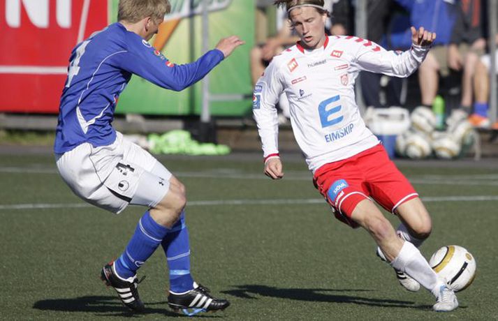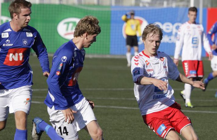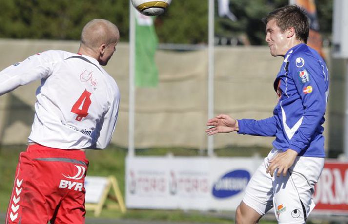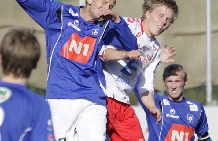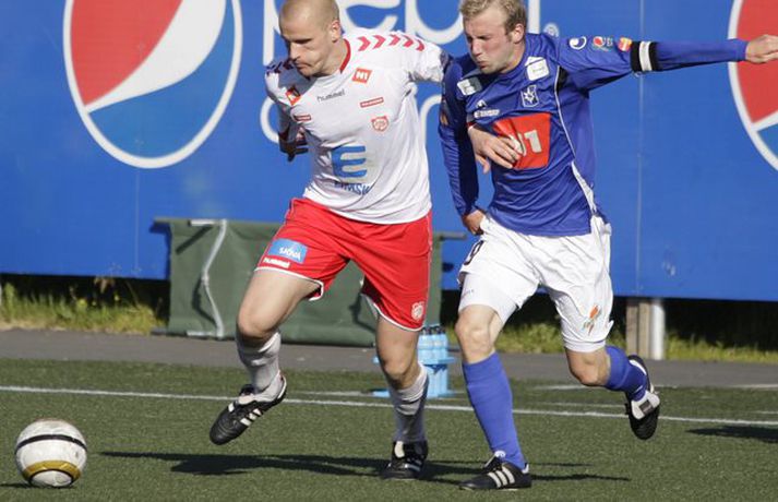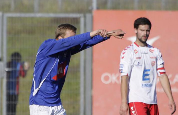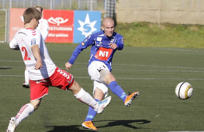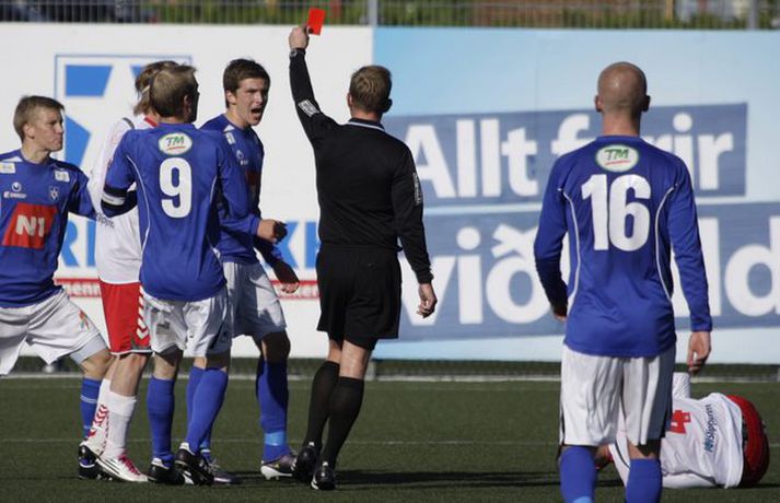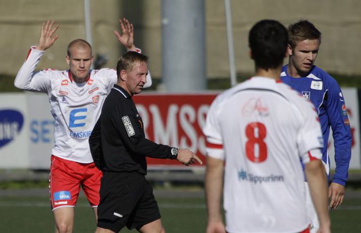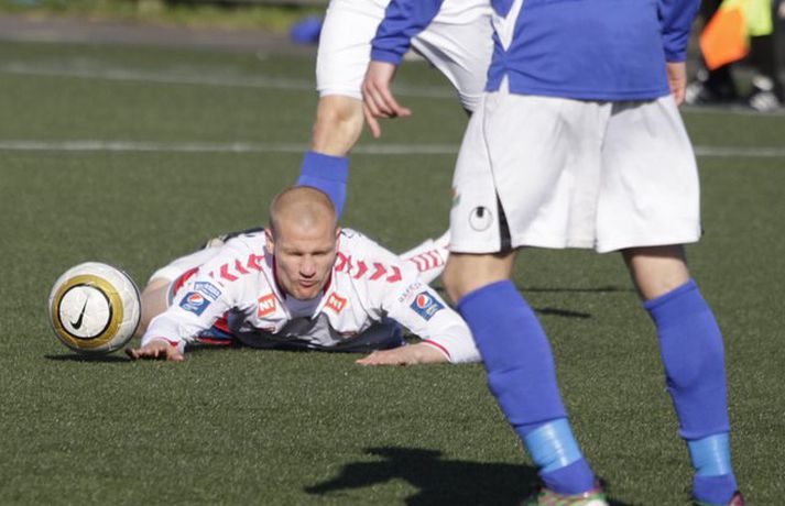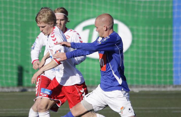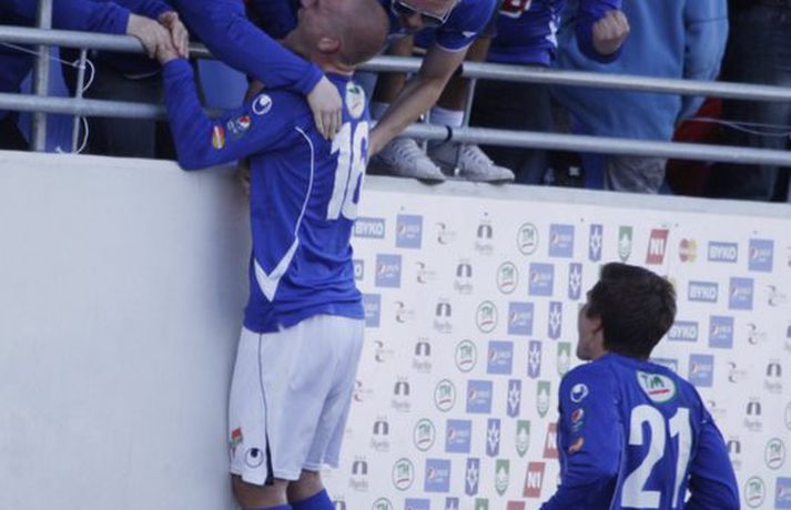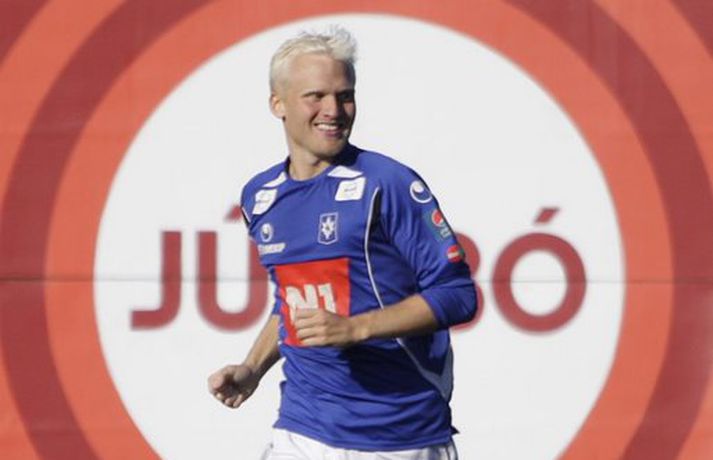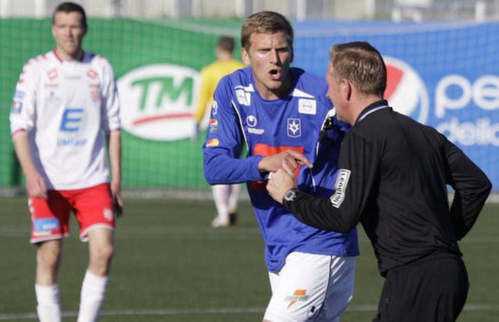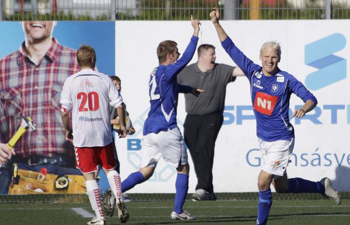 Stjarnan vann í gær 5-1 sigur á Þór þrátt fyrir að hafa leikið manni færri í rúman hálfleik. Garðar Jóhannsson skoraði þrennu. Baldvin Sturluson fékk að líta rauða spjaldið undir lok fyrri hálfleiks en staðan var þá 2-1 fyrir Stjörnuna. Í stað þess að pakka í vörn og vona það besta skoruðu Stjörnumenn þrjú mörk í seinni hálfleik og léku á als oddi. Valgarður Gíslason, ljósmyndari Vísis og Fréttablaðsins, var á vellinum og tók þessar myndir.Halldór Orri Björnsson fagnar í gær.Mynd/Valli