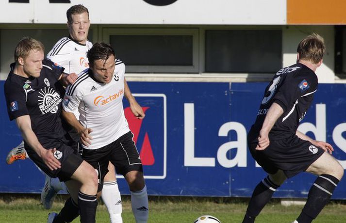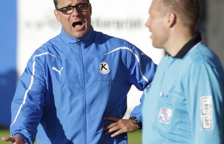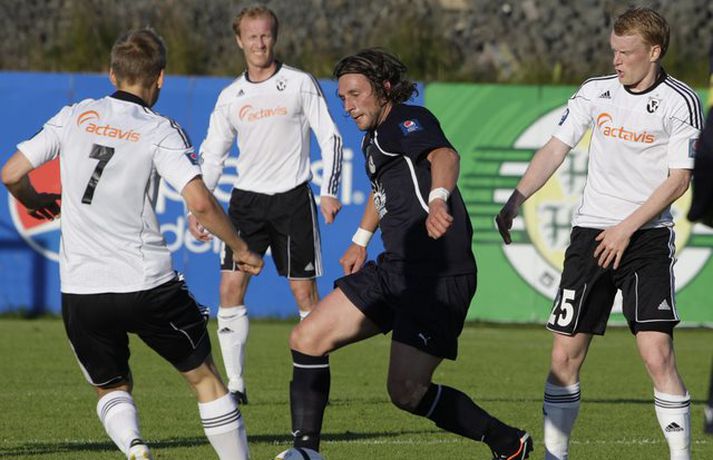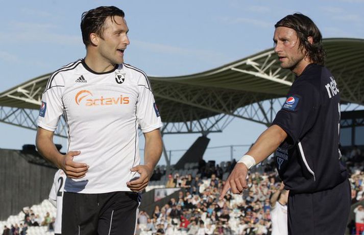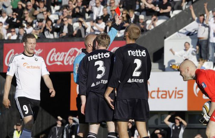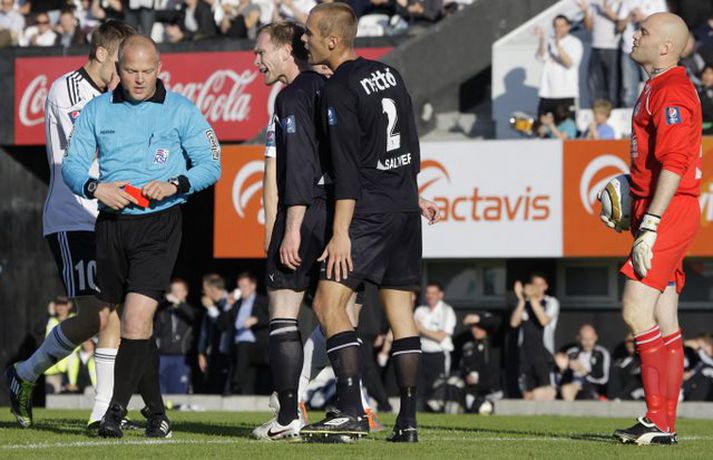 FH er komið upp í þriðja sæti Pepsi-deildar karla eftir 1-0 sigur á Keflavík í miklum baráttuleik á Kaplakrikavelli í gær. Atli Viðar Björnsson kom inn á sem varamaður og tryggði FH sigur með marki á 81. mínútu. FH-ingar léku reyndar manni fleiri í 84 mínútur eftir að Adam Larsson var vikið af velli snemma leiks. Valgarður Gíslason, ljósmyndari Vísis og Fréttablaðsins, var á vellinum og tók þessar myndir.Willum Þór Þórsson og Heimir Guðjónsson.Mynd/Valli