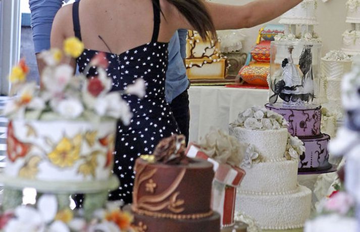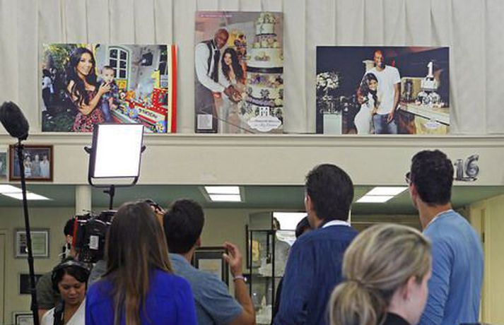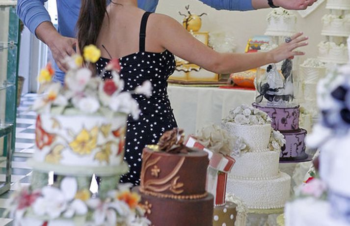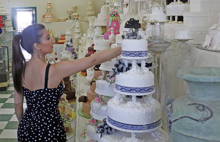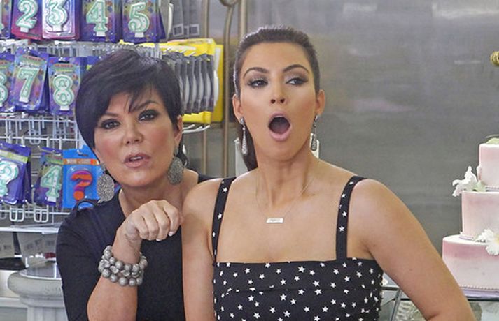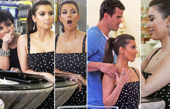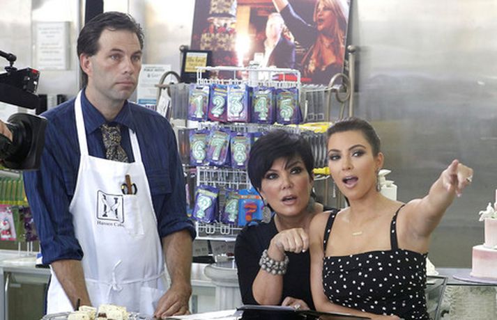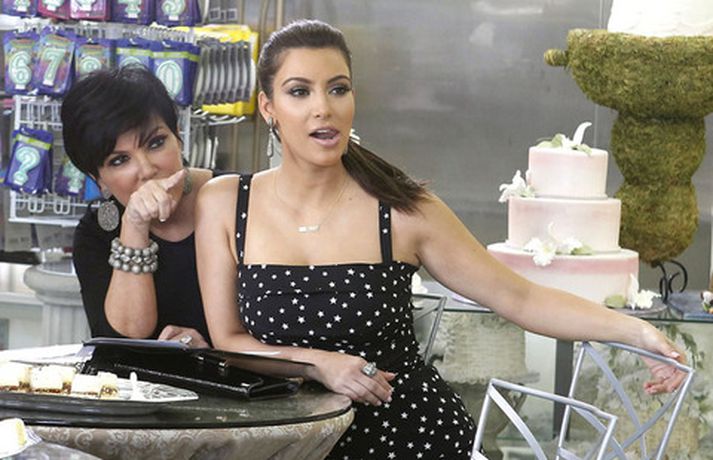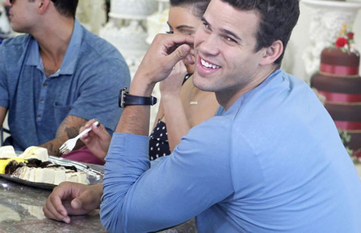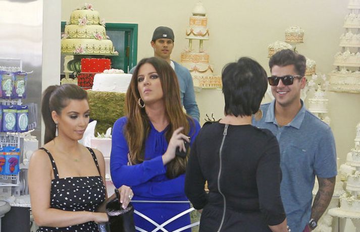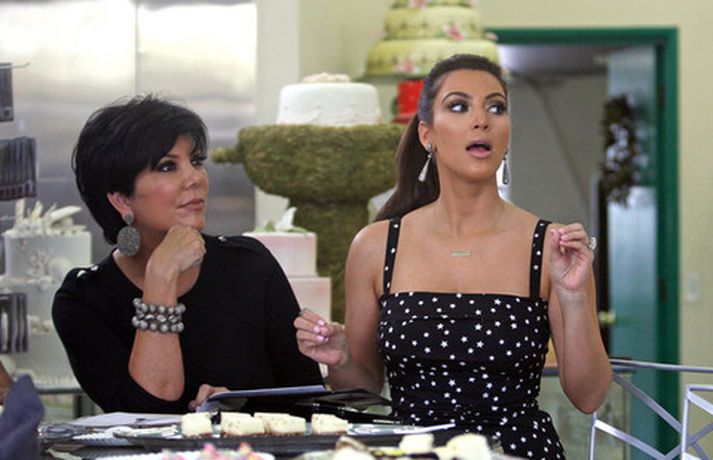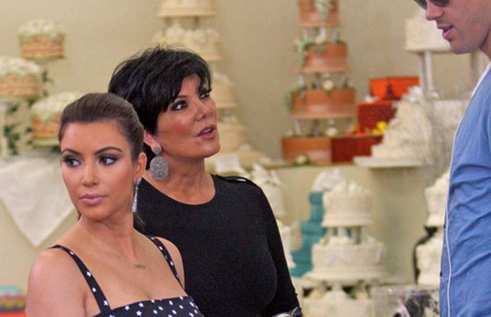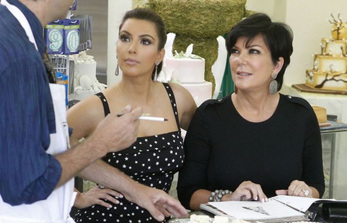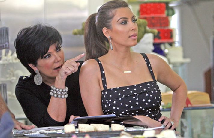 Eins og myndirnar sýna geispaði sjónvarpsstjarnan Kim Kardashian, 30 ára, á milli þess sem hún smakkaði brúðartertur með mömmu sinni, systur Khloe og verðandi eiginmanni sínum, körfuboltastjörnunni Kris Humphries, sem hún trúlofaðist í lok maí eftir aðeins sex mánaða kynni. Að vanda var fjölskyldan í fylgd kvikmyndatökumanna á meðan á kökusmökkuninni stóð. Brúðkaupið fer fram 20. ágúst næstkomandi.