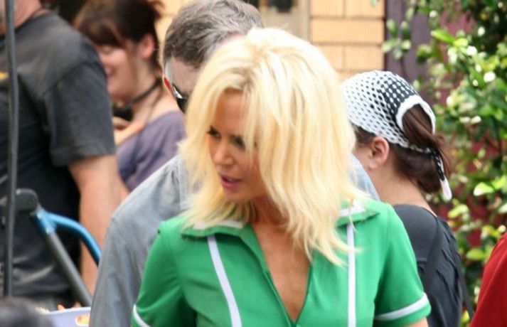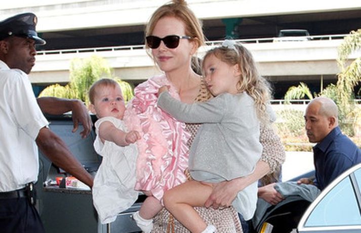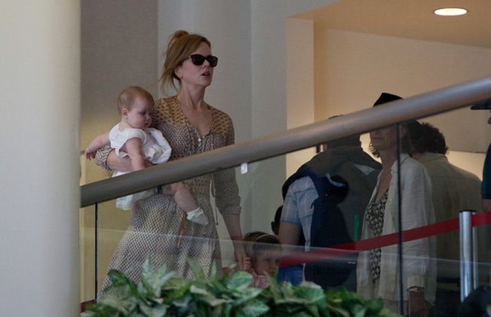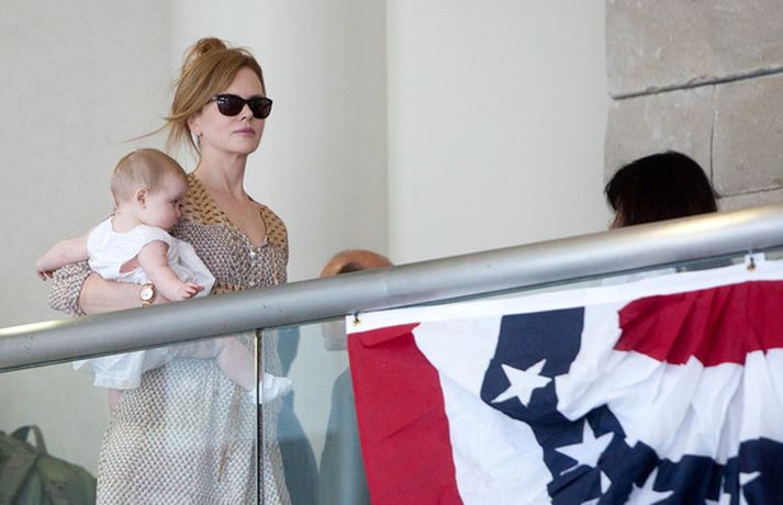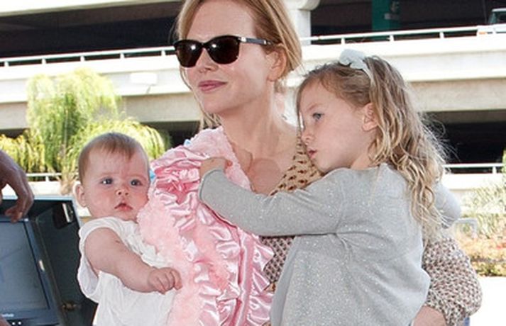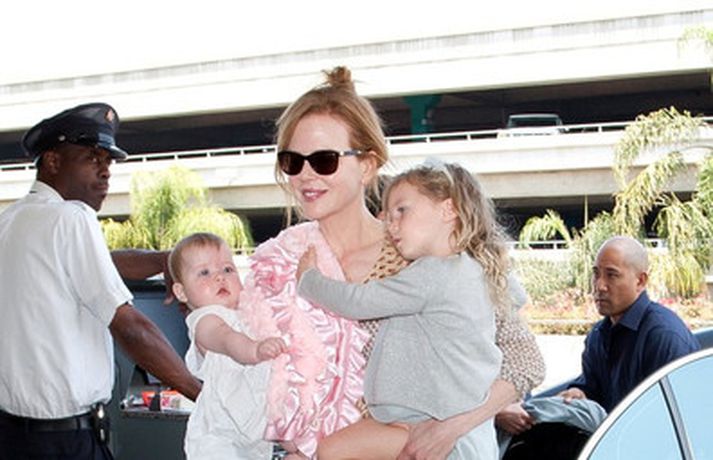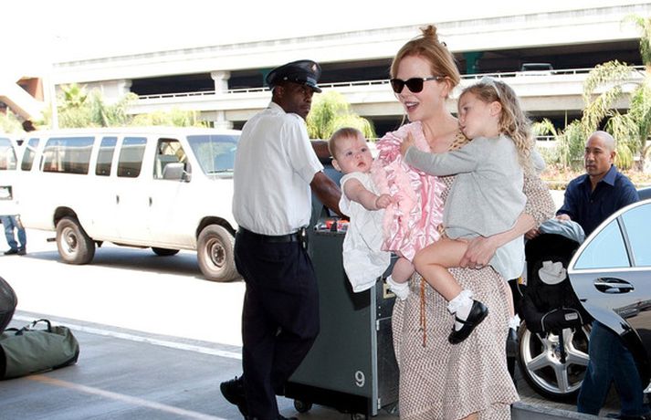Leikkonan Nicole Kidman, 44 ára, er þessa dagana stödd í New Orleans við tökur á nýrri kvikmynd sem ber heitið The Paperboy. Upphaflega var leikkonan Sofia Vergara ráðin í aðalhlutverkið en Nicole ákvað að taka það að sér með stuttum fyrirvara, í júní síðastliðnum. Meðfylgjandi myndir voru teknar af Nicole með aflitað hárið á tökustað í gær.Þá má sjá myndir sem teknar voru af henni með eiginmanni sínum, Keith Urban, á hlaupum klædd í rauðan kjól og þar sem hún heldur á dætrum þeirra, Sunday Rose og Faith Margaret, á LAX flugvellinum í Los Angeles.
