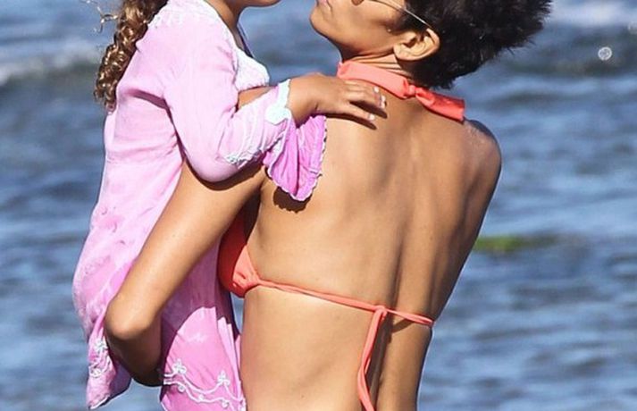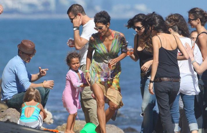 Leikkonan Halle Berry, hélt upp á 45 ára afmælið sitt með dóttur sinni, Nöhlu, franska unnustanum Olivier Martinez og vinum á Malibuströnd í gærdag.Eftir að ég átti stelpuna æfi ég meira og legg mig fram við að borða hollt, sagði Halle spurð hvernig hún heldur sér í formi. Eins og sjá má í myndasafni skemmti Halle, sem er í þetta líka góðu formi, sér greinilega vel á afmælisdaginn.myndir/cover media
