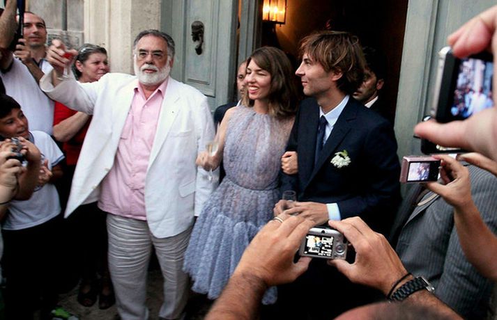 Lost in Translation leikstjórinn, Sofia Coppola, 40 ára, og franski tónlistarmaðurinn Thomas Mars giftu sig um helgina. Parið var pússað saman á heimili Coppola fjölskyldunnar á suður Ítalíu. Pabbi Sofiu, leikstjórinn Francis Ford Coppola, var að vonum glaður eins og sjá má á myndunum sem teknar voru fyrir utan heimili þeirra stuttu eftir persónulega og fámenna athöfn sem fram fór í garðinum þeirra. George Lucas og Johnny Depp voru á meðal gesta í brúðkaupinu. Sofia og Thomas eiga tvær dætur saman, Romy og Cosima. Þá má líka sjá Sofiu ásamt dóttur þeirra Cosimu í myndasafni.