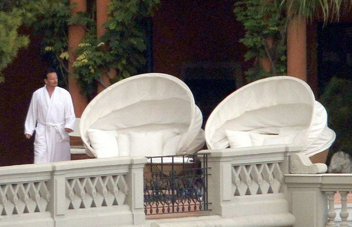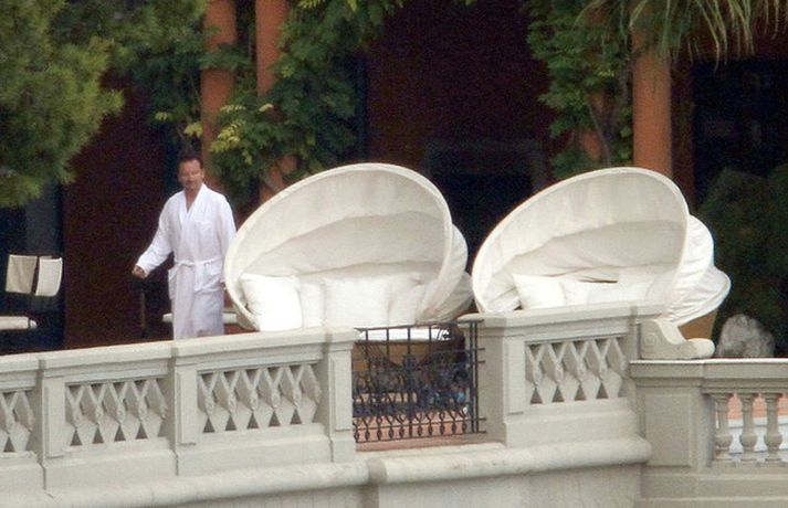 Meðfylgjandi má sjá Paul David Hewson, eða öllu heldur sjálfan Bono, 51 árs, í hvítum baðslopp fyrir utan lúxusvillu á frönsku rívierunni. Á myndunum sem teknar voru í gær má einnig sjá börnin hans. Bono á tvær dætur, Memphis Eve og Jordan, og tvo syni, Elijah Bob Patricius Guggi Q og John Abraham.