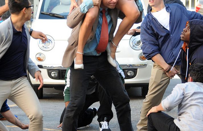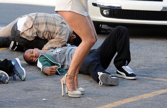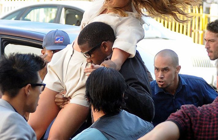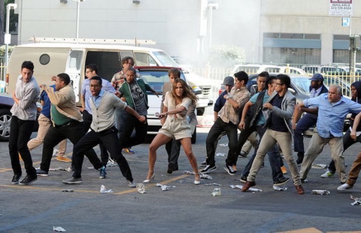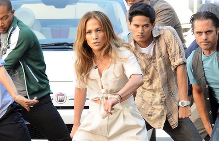 Í meðfylgjandi myndaalbúmi má sjá Jennifer Lopez, 42 ára, ásamt fjölda dansara við tökur á nýju tónlistarmyndbandi.Fegurð kemur innan frá. Þú sérð hana endurspeglast í augunum á fólki, lét Jennifer, sem var nærri dottin af baki eins dansarans, hafa eftir sér.Hér má sjá Jennifer sjóðheita í leðri.myndir/cover media