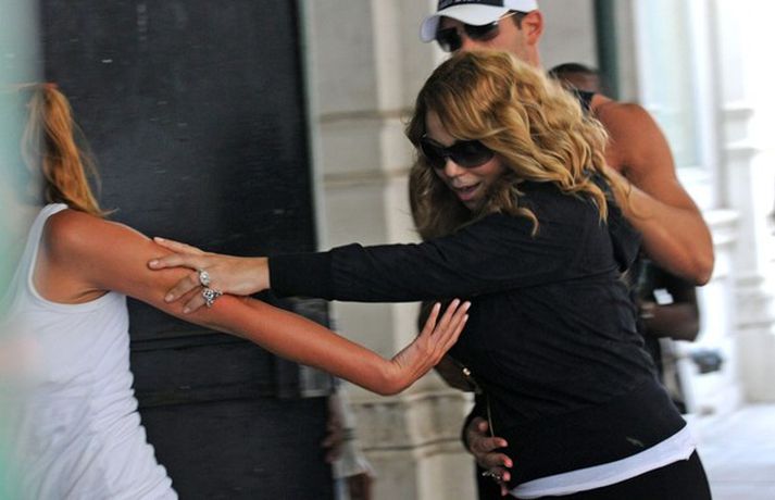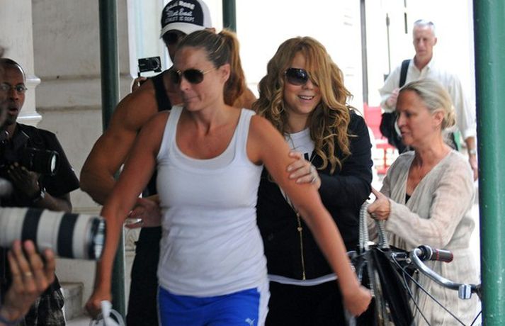 Söngkonan Mariah Carey, 41 árs, sem eignaðist tvíburana Monroe og Moroccan 30. apríl síðastliðinn lýsir meðgöngunni sem erfiðri líkamlegri upplifun. Mariah, sem hefur verið dugleg að setja myndir af sér á Twitter síðuna sína, lét hafa eftir sér opinberlega hvað hún er stolt af því að hafa lést um 29,5 kíló síðan hún fæddi börnin:Ég er svo stolt af sjálfri mér. Ég er það virkilega. Að ganga með tvíbura er ólíkt öllu öðru. Það er auðvelt að segja að þetta sé allt þess virði en þegar fæturnir þínir eru risastórir og óþekkjanlegir þá er þessi reynsla töluvert erfiðari en margan grunar. Nú skokkar söngkonan daglega og borðar holla fæðu á milli þess sem hún hugar að tvíburunum.Meðfylgjandi myndir voru teknar af söngkonunni í fylgd einkaþjálfara og aðstoðarkonu í Tribeca hverfi í New York.