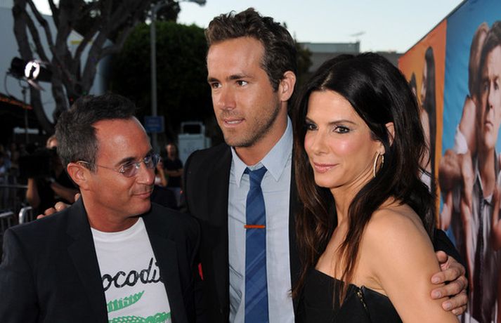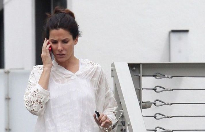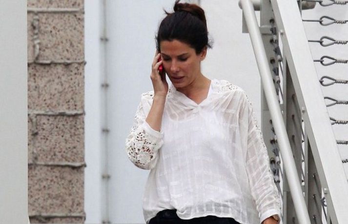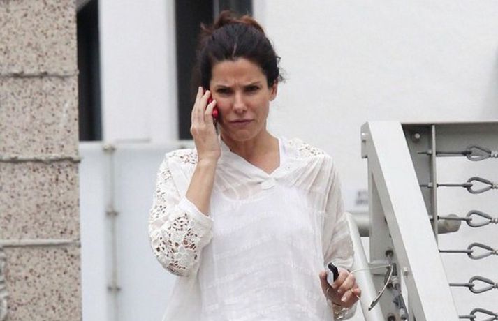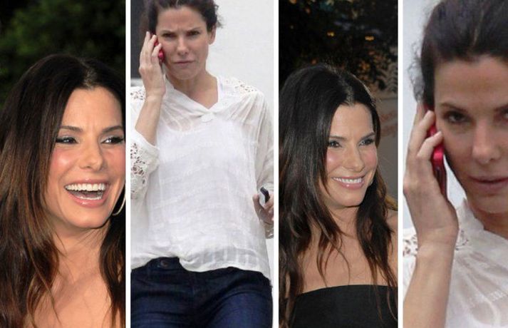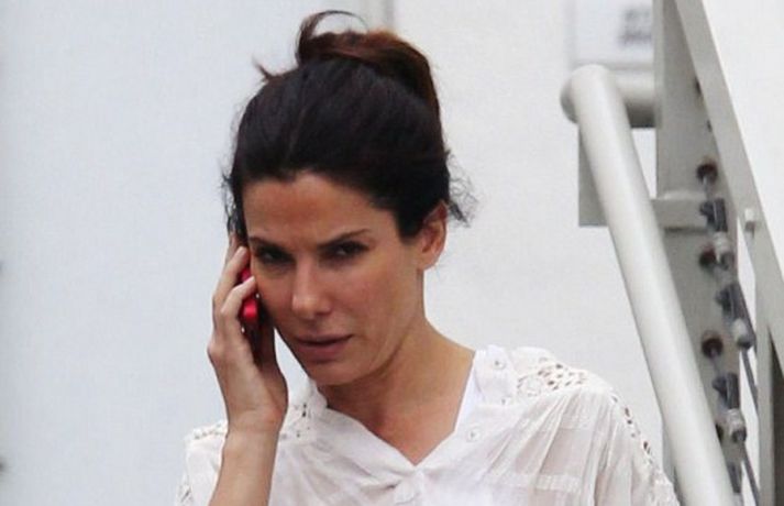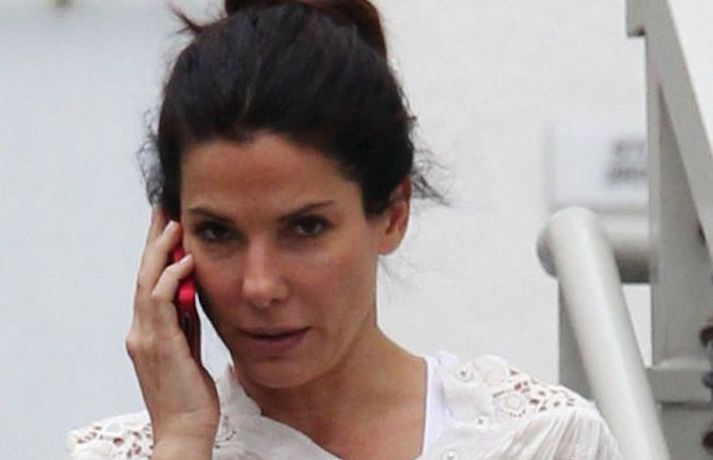 Sandra Bullock, 47 ára, var mynduð á hlaupum talandi í símann ómáluð í framan eins og sjá má á myndunum. Þá má einnig sjá Söndru með andlitsfarða stilla sér upp á rauða dreglinum ásamt vini sínum, leikaranum Ryan Reynolds, á frumsýningu kvikmyndarinnar The Change-Up en hann fer með aðalhlutverkið í myndinni. Ryan og Sandra segjast vera góðir vinir en alls ekki elskendur eins og slúðurmiðlar beggja vegna Atlantshafsins vilja meina.