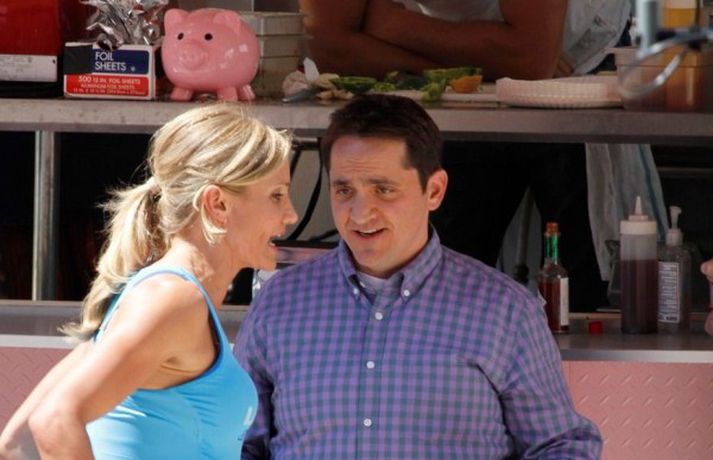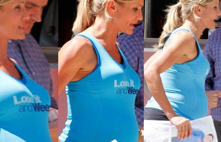 Leikkonan Cameron Diaz, 38 ára, var mynduð við tökur á rómantísku gamanmyndinni What to Expect When You're Expecting. Myndin fjallar um fjögur pör sem undirbúa sig fyrir barneignir. Eins og myndirnar sýna fer 'gervimaginn' Cameron afskaplega vel en hún er barnlaus.Sjá myndir hér.