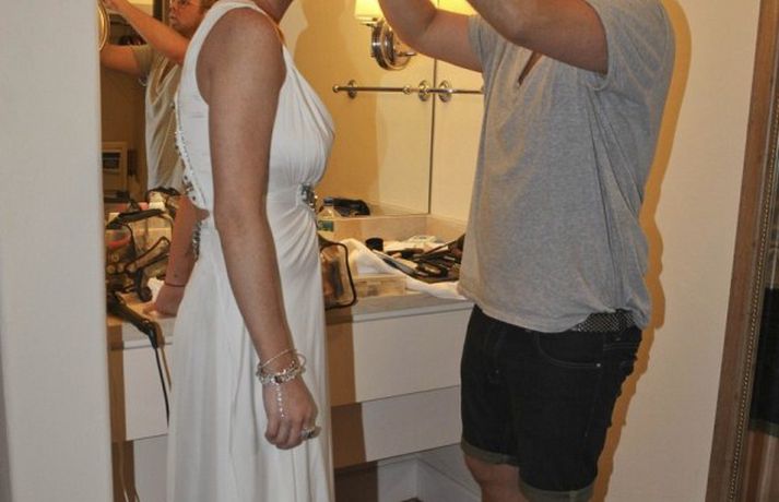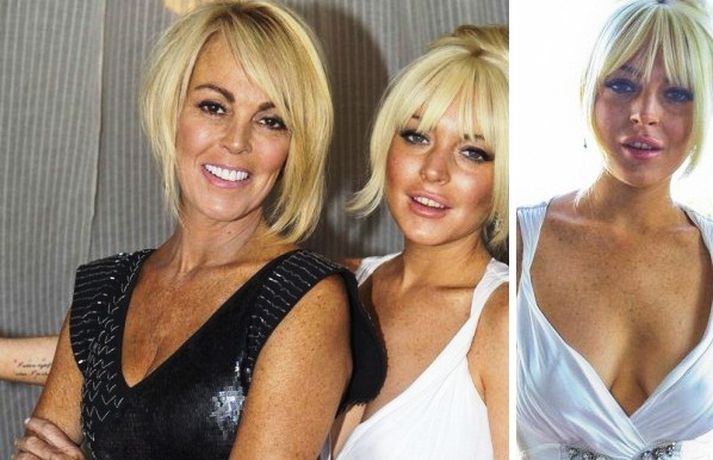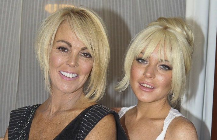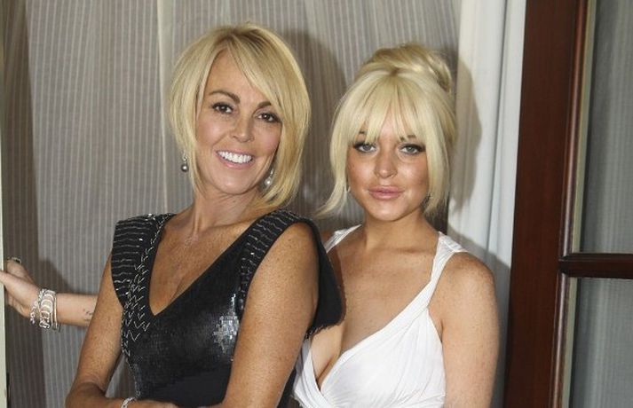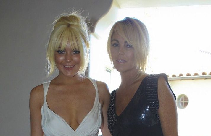 Leikkonan Lindsay Lohan, 25 ára, og mamma hennar, Dina, stilltu sér upp áður en þær fóru í Kardashian brúðkaupið síðasta laugardag. Mæðgurnar, sem voru á meðal 440 brúðkaupsgesta, voru í spariskapi klæddar í síða kjóla með uppsett hárið eins og sjá má á myndunum.Hér má sjá myndir/video úr brúðkaupinu.