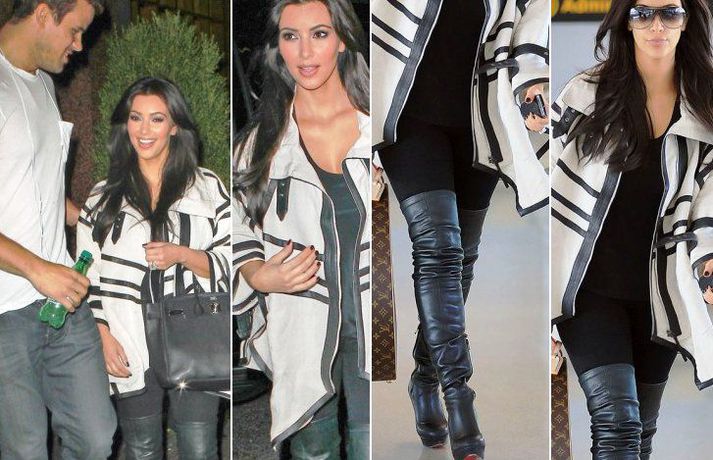 Kim Kardashian var klædd í svört há leðurstígvél þegar hún mætti til New York í fylgd eiginmannsins Kris Humphries í dag. Kim er stödd í New York því næstu daga fara fram tökur á raunveruleikaþættinum Kourtney and Kim Take New York þar sem hún og systir hennar Kourtney eru í aðalhlutverkum með eiginmönnum sínum. Skoða má stígvélin hennar betur hér.