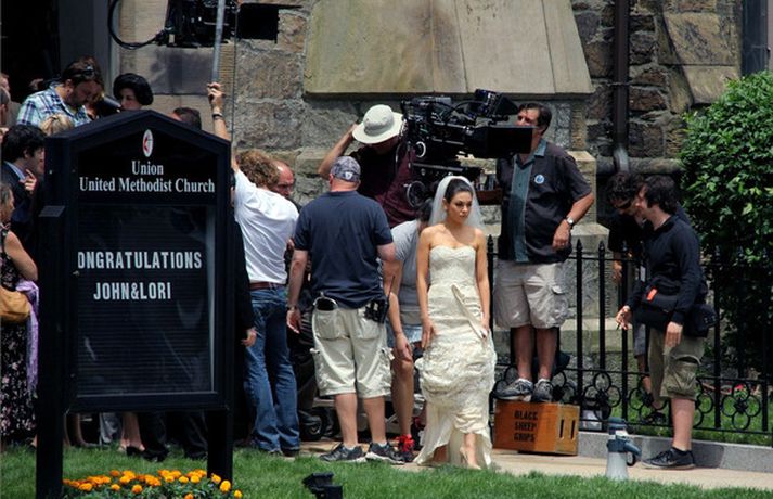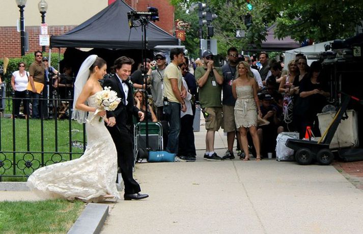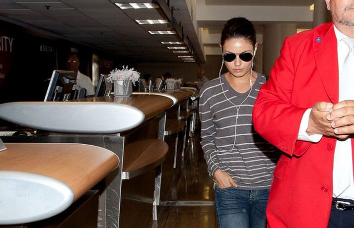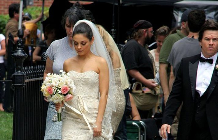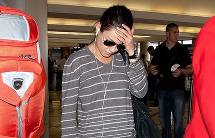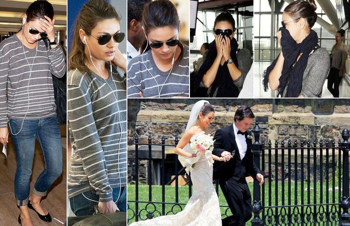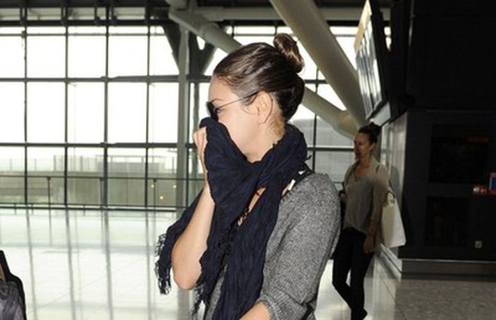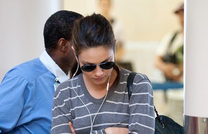 Leikkonan Mila Kunis, 28 ára, huldi andlit sitt eins og sjá má á meðfylgjandi myndum sem teknar voru af henni á Heathrow flugvelli í London í síðustu viku og í gær á LAX flugvelli í Los Angeles þar sem hún hækkaði tónlistina í botn til að útiloka ljósmyndara sem mynduðu hvert fótspor sem hún tók. Þá má sjá Milu á góðri stundu með mótleikara sínum, Mark Wahlberg, leika í brúðarsenu í nýrri gamanmynd sem ber heitið Ted.