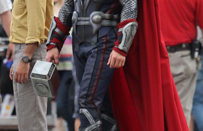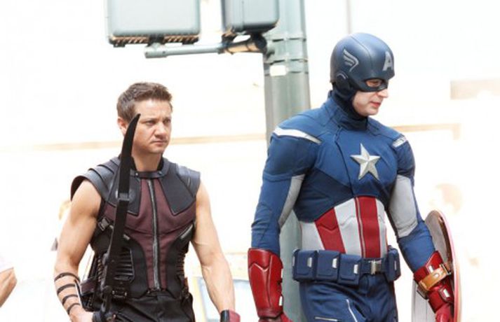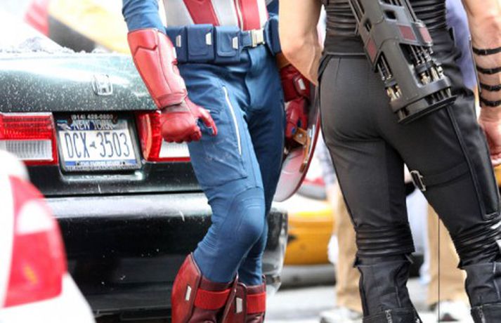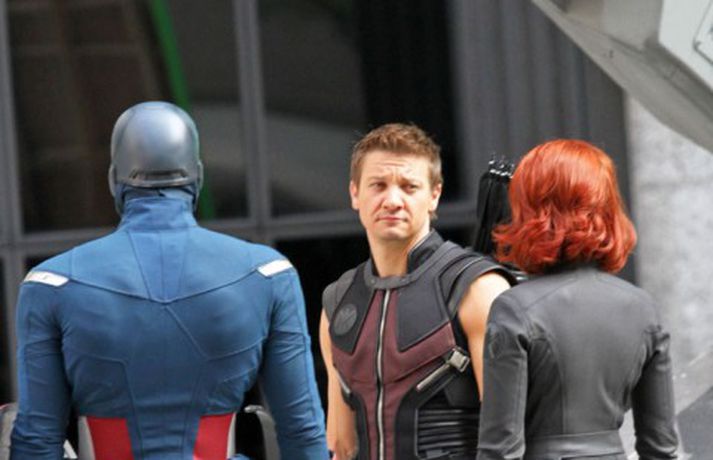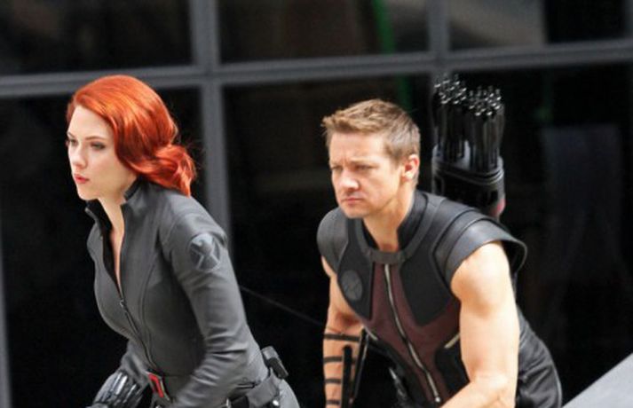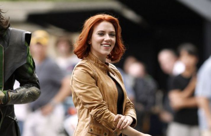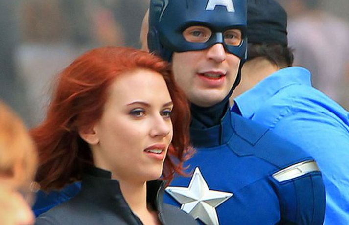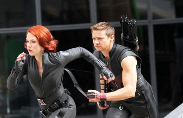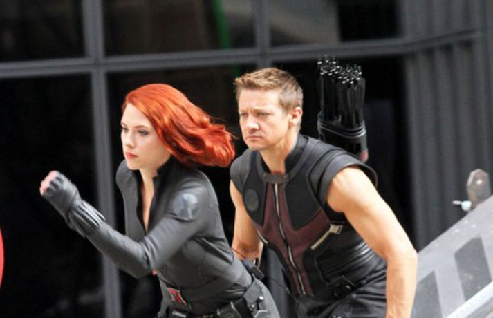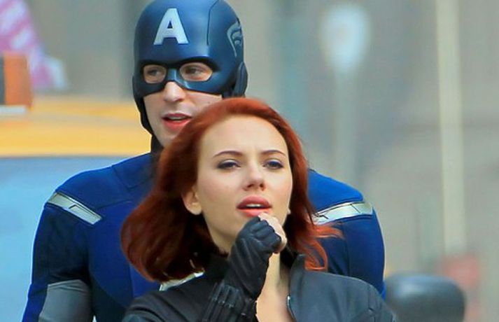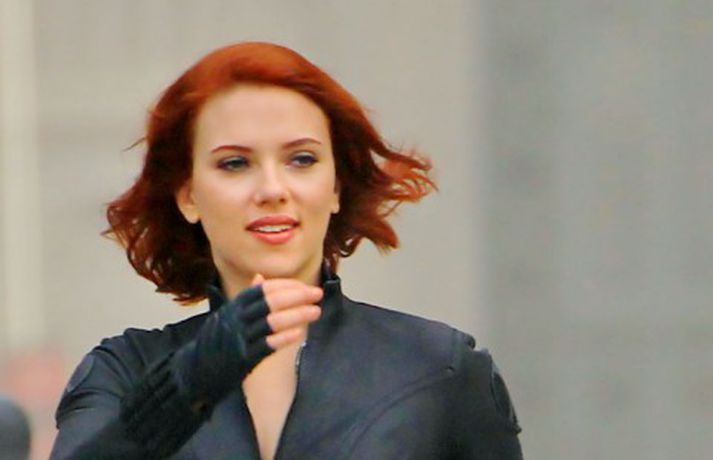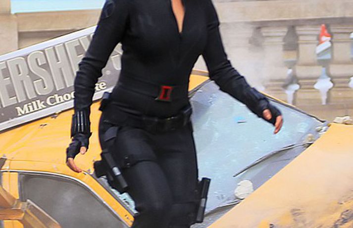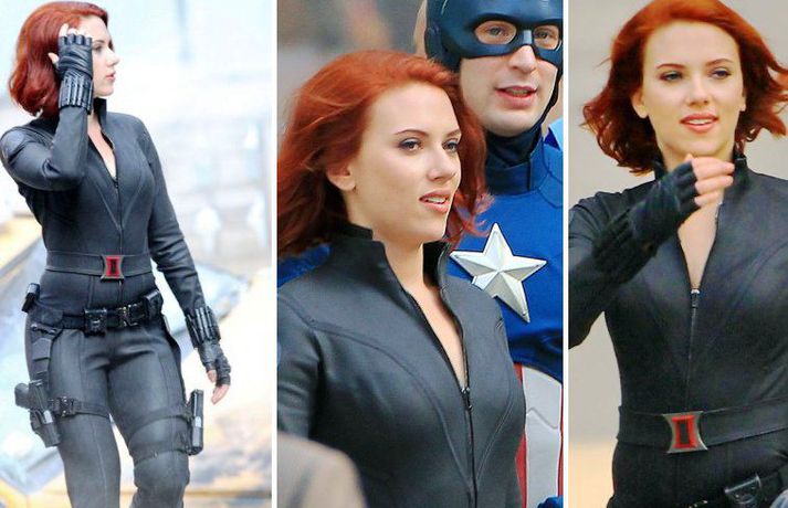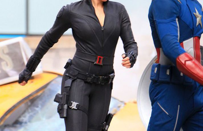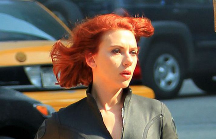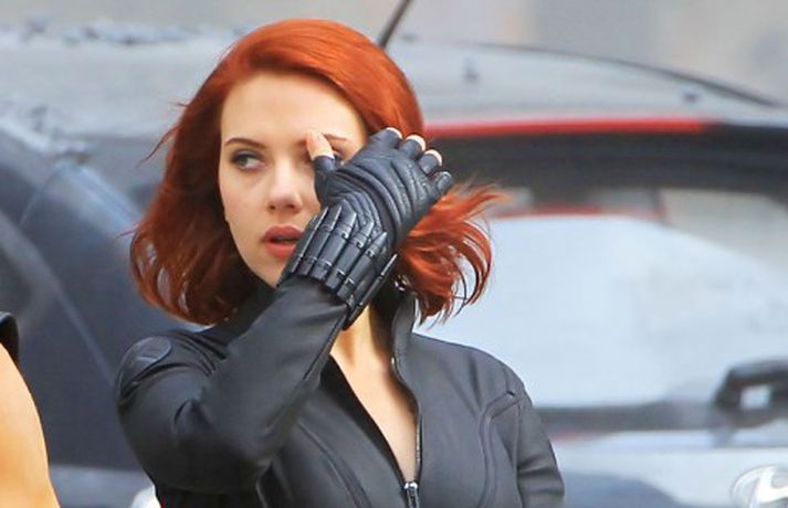 Leikkonan Scarlett Johansson, klædd í svartan þröngan ofurhetjugalla og leikararnir Chris Evans og Jeremy Renner voru mynduð við tökur á kvikmyndinni The Avangers í New York. Eins og sjá má í myndasafni fara gallinn og nýi rauði háraliturinn Scarlett ósköp vel. Hún smellpassar í ofurhetjuhlutverkið. Þá má einnig sjá leikarana Chris Hemsworth, Robert Downey Jr. og Tom Hiddleston í myndasafni.