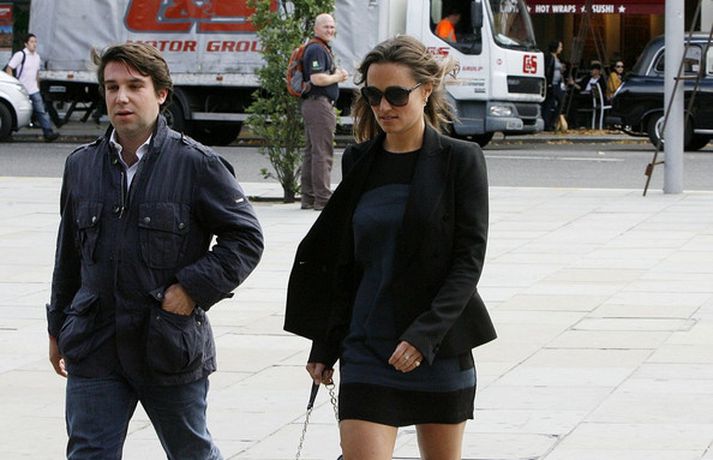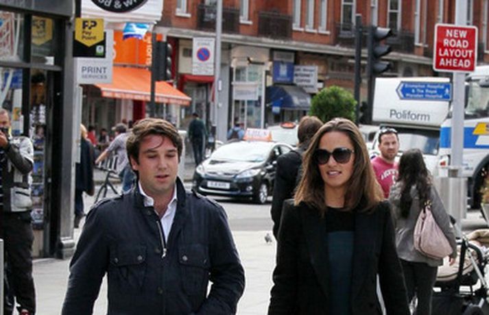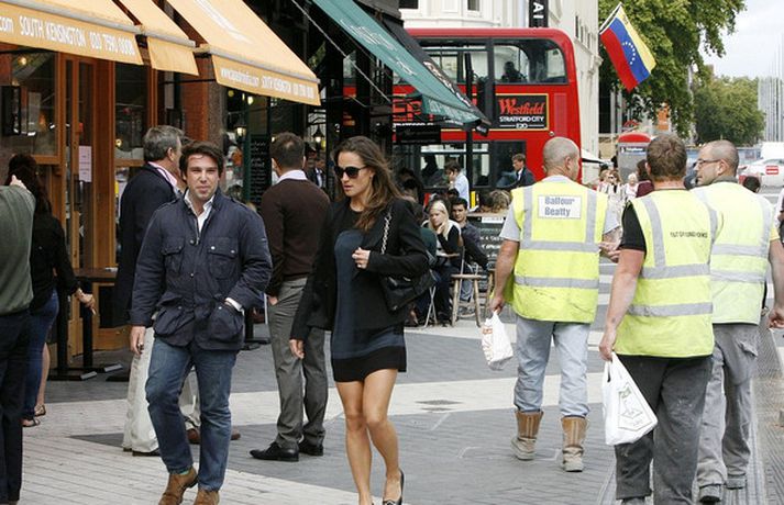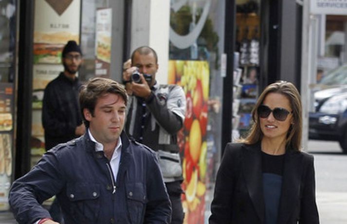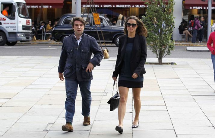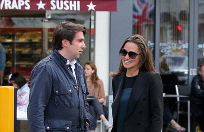 Pippa Middleton, 27 ára, litla systir hertogaynjunnar af Cambridge var mynduð í miðborg Lundúna í dag ásamt ónefndum karlmanni.Eins og sjá má í myndasafni er Pippa hætt að kippa sér upp við ljósmyndarana, eða paparassana eins og þeir eru oft nefndir, sem elta hana á röndum hvert sem hún fer.