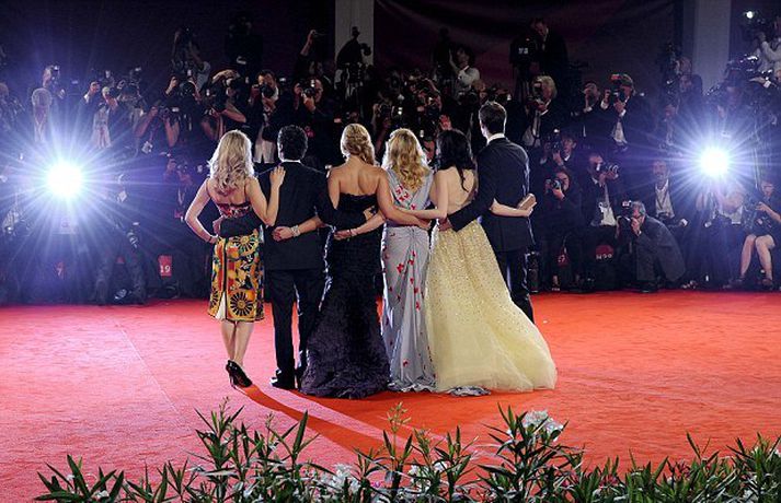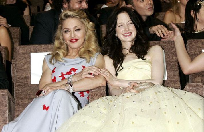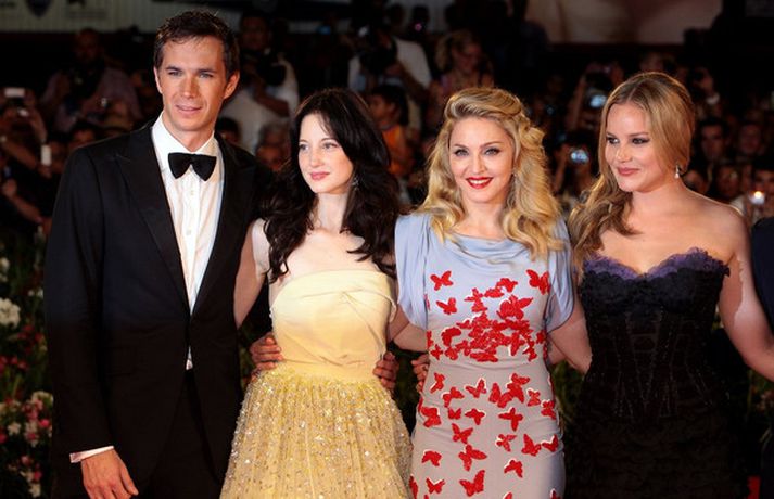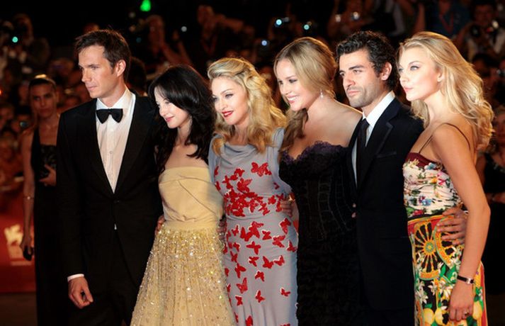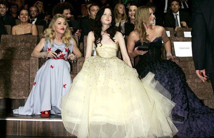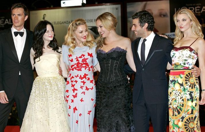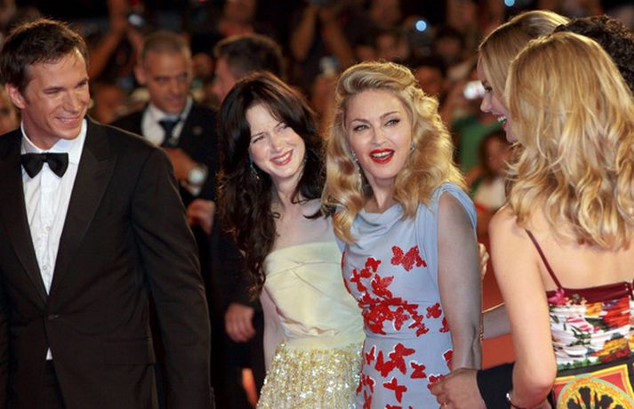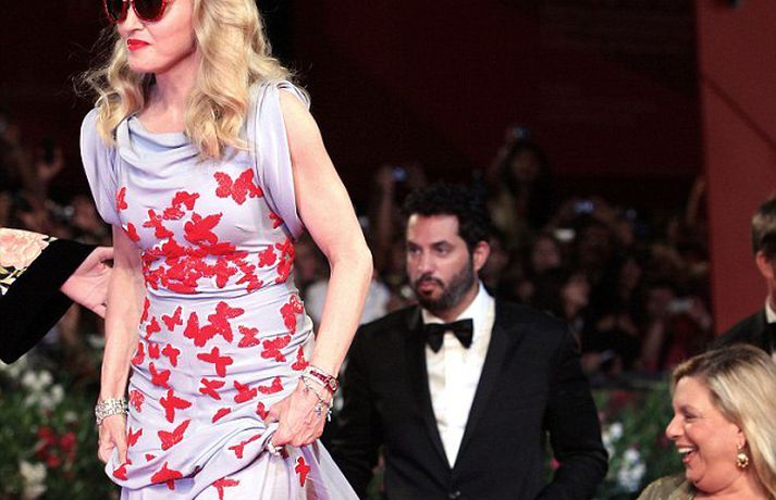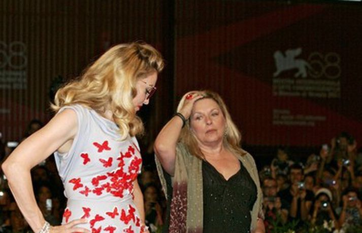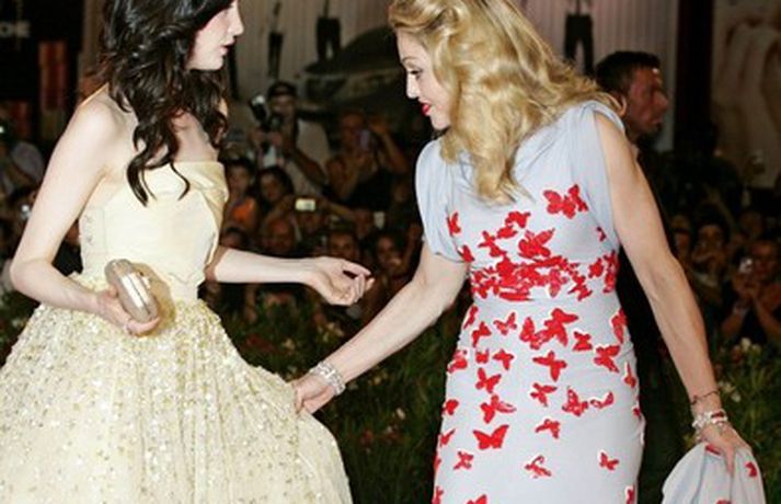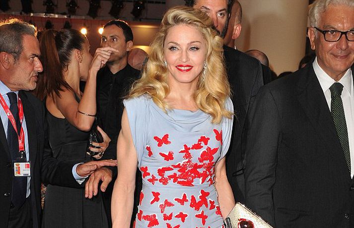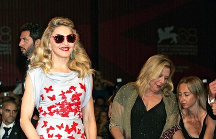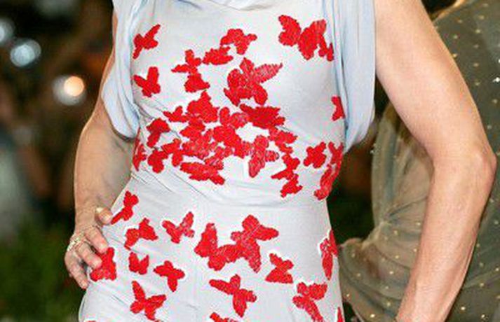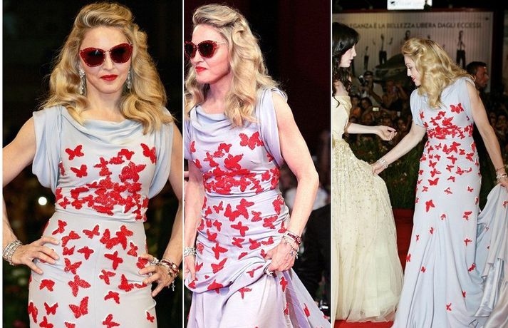 Fiðrildakjóllinn sem Madonna, 53 ára, klæddist á kvikmyndahátíðinni í Feneyjum í fyrradag vakti verðskuldaða athygli. Ljósblár síðkjóllinn skreyttur með rauðum fiðrildum eftir ítalska hönnuðinn Vionnet sem hannaði þennan kjól sérstaklega fyrir Madonnu stal senunni. Söngkonan var megasæt með liðað hárið, rauð sólgleraugu á nefinu, eldrauðan varalit og demantaskreytt eins og sjá má á myndunum.Hér má sjá haustlínu Vionnet.
