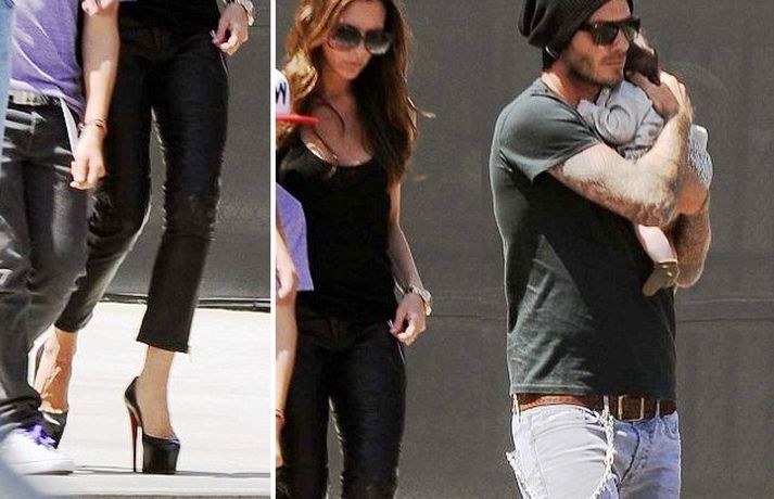 Ekki glæta að þessir séu þægilegir Victoria 3. september 2011 10:10 myndir/cover media David Beckham, 36 ára, hélt á Harper dóttur sinni, sem fæddist 10. júlí síðastliðinn, í verslunarleiðangri í Hollywood í gærdag. Eins og sjá má á myndunum var Victoria, 37 ára, með í för klædd í leðurbuxur og þetta líka svimandi háa hæla, Louboutin hælaskó réttara sagt. Þá var elsti sonur þeirra, Brooklyn, einnig með í för og lífvörður. Mest lesið Telur notkun á lagi í Miðflokks-stuðningsmyndbandi siðlausa Lífið Heldur ótrauð áfram þrátt fyrir að ná ekki milljónamarkmiðinu Lífið Stjörnulífið: „Ég get ekki frestað þessu lengur“ Lífið Bæði sorg og gleði að ala upp fimm börn með sérþarfir Lífið Vinsælustu myndböndin á Vísi á árinu Lífið „Hæ ástin mín, Nýtt í hverjum mánuði á fimmtudaginn, ertu laus?“ Áskorun Glódís Perla og Kristófer gengu í það heilaga Lífið „Fyrri kona mannsins míns er með Parkinson, ekki ég“ Áskorun Melanie Watson er látin Lífið Ásgeir Kolbeins furðu lostinn yfir steini í jólapakkanum Lífið Fleiri fréttir Melanie Watson er látin Telur notkun á lagi í Miðflokks-stuðningsmyndbandi siðlausa Stjörnulífið: „Ég get ekki frestað þessu lengur“ Heldur ótrauð áfram þrátt fyrir að ná ekki milljónamarkmiðinu Brigitte Bardot er látin Glódís Perla og Kristófer gengu í það heilaga Bæði sorg og gleði að ala upp fimm börn með sérþarfir Sjálfur jólasveinninn skotspónn samsæriskenninga Þakkar Trump í ólettutilkynningunni Íslenskur mágur Rex Heuermann efins um ódæði hans Vinsælustu myndböndin á Vísi á árinu Frægir fjölguðu sér árið 2025 Gítarleikari The Cure er látinn Skilaði týndum heyrnartólum alla leið til Hamborgar Sjáðu nýja stiklu úr stjörnuprýddri hasarmynd Balta Ásgeir Kolbeins furðu lostinn yfir steini í jólapakkanum Viðtöl ársins 2025: Missir, afsögn ráðherra, umsáturseinelti og læknir sem þóttist vera með krabbamein Sat uppi með sex kíló af kæstri skötu Kristmundur Axel tók við af Bubba Seinfeld og Friends-leikari látinn Jólagjafir íslenskra vinnustaða Deildar meiningar um lyktina: „Þetta er byrjendaskata“ Fréttamenn gæða sér á skötu í gegnum árin Laufey á landinu Þar sem vinsælustu lög landsins verða til Þessi smurðu mest á reikning Jommunnar Einhverfir kaþólikkar um allan heim heita Þorlákur Cooper bað móðurina um hönd Hadid „Mér finnst gaman að láta sjokkera mig“ Brúðkaup ársins 2025 Sjá meira