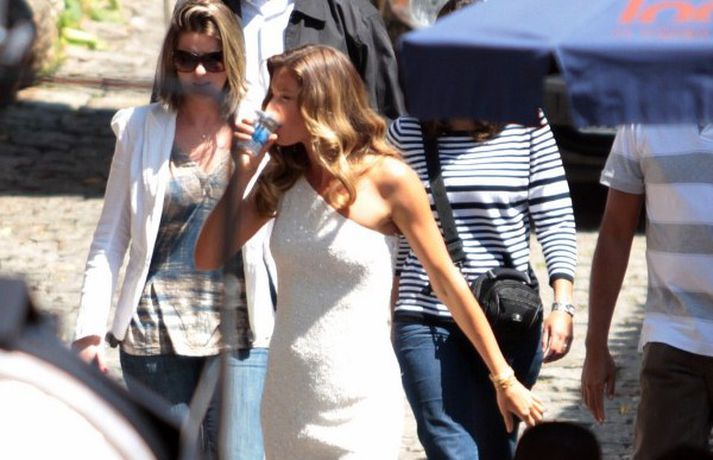 Brasilíska fyrirsætan Gisele Bundchen, 31 árs, var upptekin klædd í hvítan kjól í myndatöku í Sao Paulo í Brasilíu í gær.Ég er vinnualki og hef verið það lengi, lét fyrirsætan hafa eftir sér. Þá má sjá hana skokka í líkamsræktina í myndasafni.