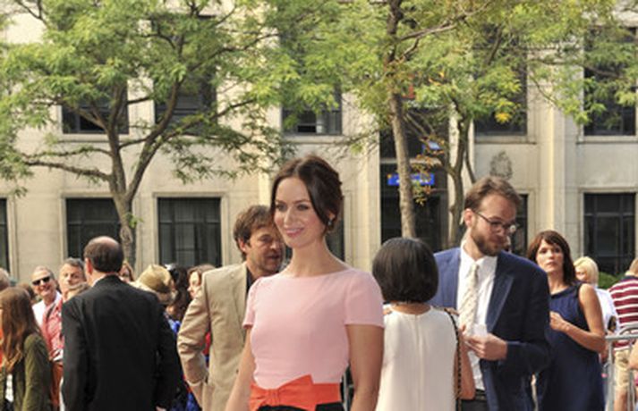Breska leikkonan Emily Blunt, 28 ára, vakti athygli á rauða dreglinum á kvikmyndahátíðinni í Torontó klædd í fallegan Prada kjól með rauðri slaufu í mittið. - Skoða kjólinn betur hér. Um var að ræða frumsýningu á myndinni Your Sister's Sister. Þá má einnig sjá skoska leikarann Ewan McGregor í myndasafni.Prada - vetur 2011.