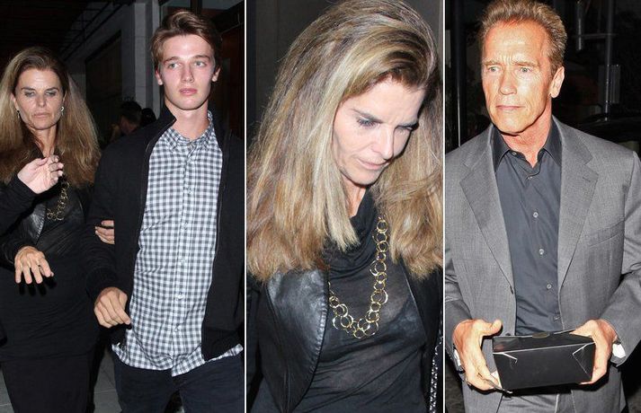 Maria Shriver, 55 ára, og Arnold Schwarzenegger, 64 ára, sem skildu eftir 25 ára hjónaband, sjást nánast daglega saman. Nú síðast voru þau mynduð á steikhúsi í Beverly Hills ásamt börnum þeirra Katherine, 21 árs, Patrick, 18 ára og Christopher, sem hélt upp á 14 ára afmælið sitt þetta kvöld. Nú eru getgátur uppi um að Maria og Arnold ætli að taka saman aftur.