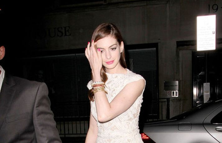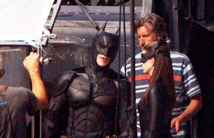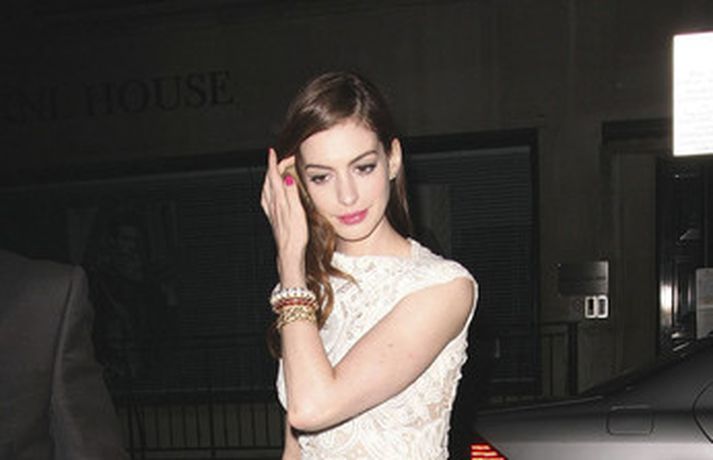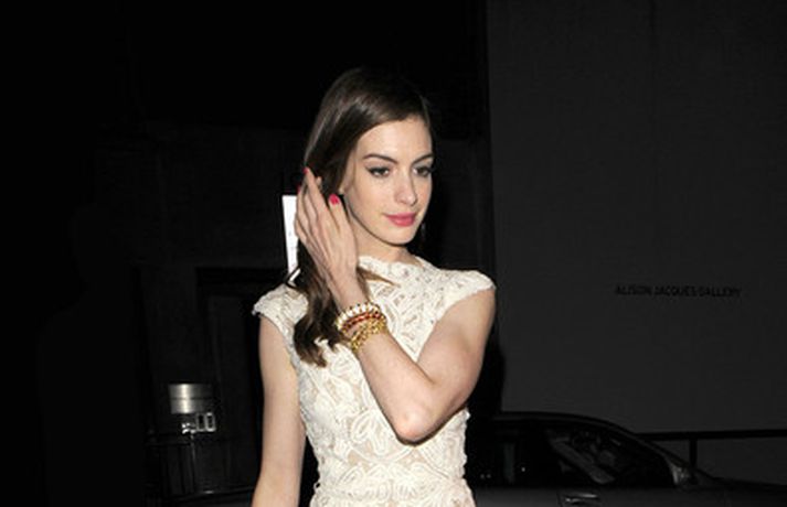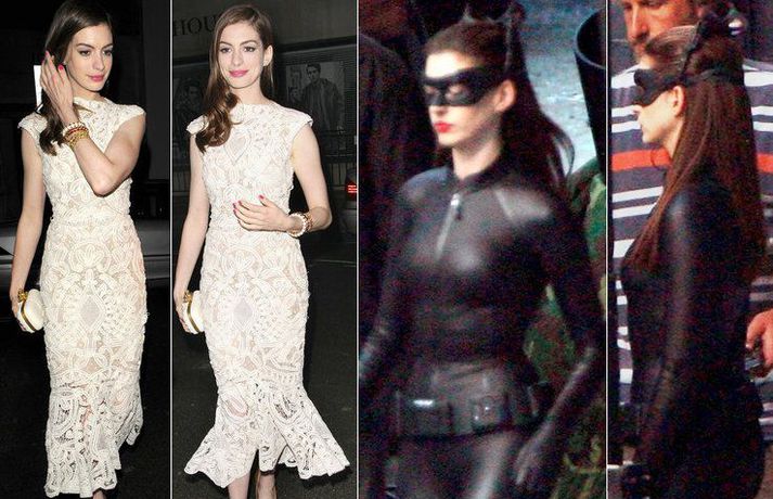 Leikkonan Anne Hathaway, 28 ára, var klædd í kattarkonugallann við tökur á næstu Batman kvikmyndinni The Dark Knight Rises með leikurunum Christian Bale og Gary Oldman.Ég lít best út þegar hópur af fólki hefur eytt klukkutímum í að laga hárið á mér og farða mig. Mér líður hinsvegar best þegar ég hef ekki litið í spegil í marga daga og tekst á við það sem gleður mig, sagði Anne. Þá má einnig sjá í myndasafni þegar leikkonan var klædd í fallegan Alexander McQueen blúndukjól á frumsýningu kvikmyndarinnar One Day.