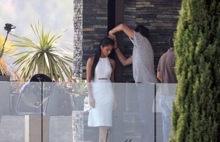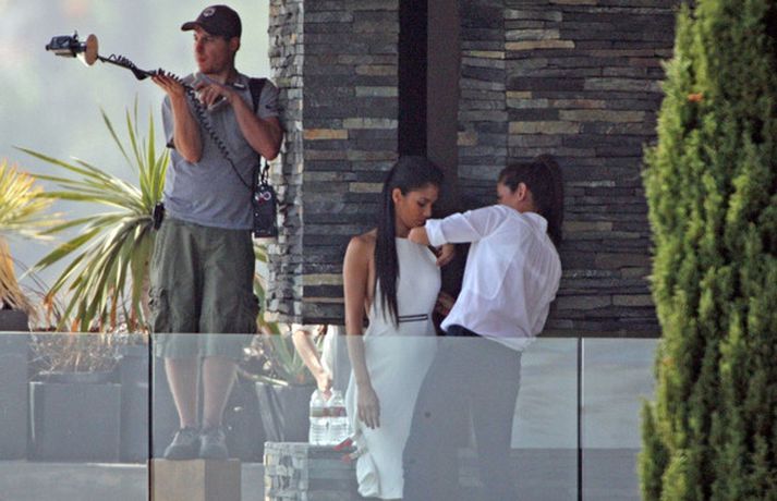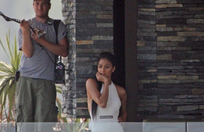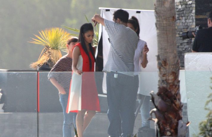 Á meðfylgjandi myndum má sjá söngkonuna Nicole Scherzinger, 33 ára, í myndatöku ásamt aðstoðarliði fyrir tímaritið Vogue í Los Angeles. Stelpunni virðist leiðast fyrirsætustarfið ef marka má myndirnar. Þá má sjá Nicole stilla sér upp í Randi Rahm kjól með samstarfsmönnum sínum, Simon Covell og Paulu Abdul, á frumsýningarkvöldi sjónvarpsþáttarins X Factor en Nicole er einn af dómurunum.