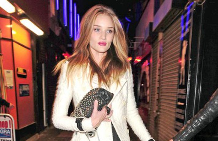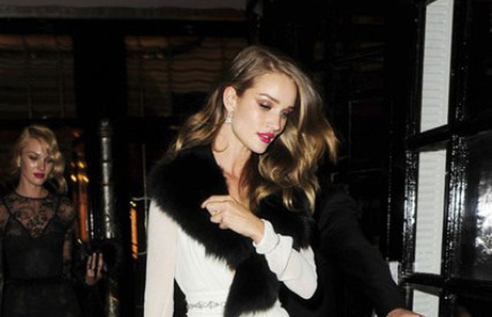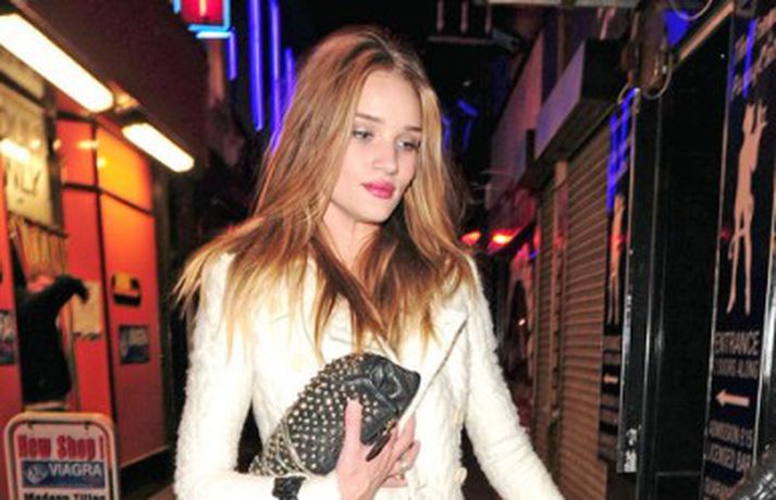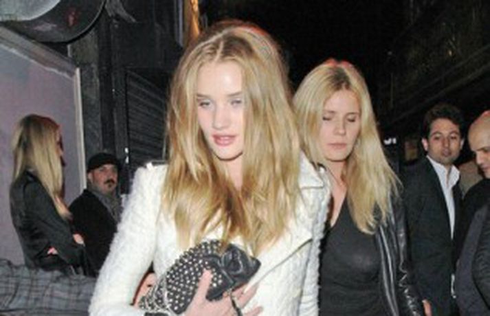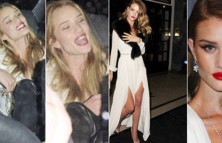 Breska fyrirsætan Rosie Huntington-Whiteley, 24 ára, sem leysti Megan Fox af í aðalhlutverki í kvikmyndinni Transformers 3, stillti sér upp á rauða dreglinum í vikunni stórglæsileg að vanda. Þá var Rosie, sem er fyrrum Victorias Secret fyrirsæta, mynduð haugadrukkin deginum áður.Eins og sjá má á myndunum átti hún erfitt með gang sökum ölvunar en vinkona sá um að leiða módelið.