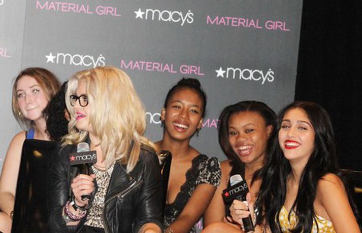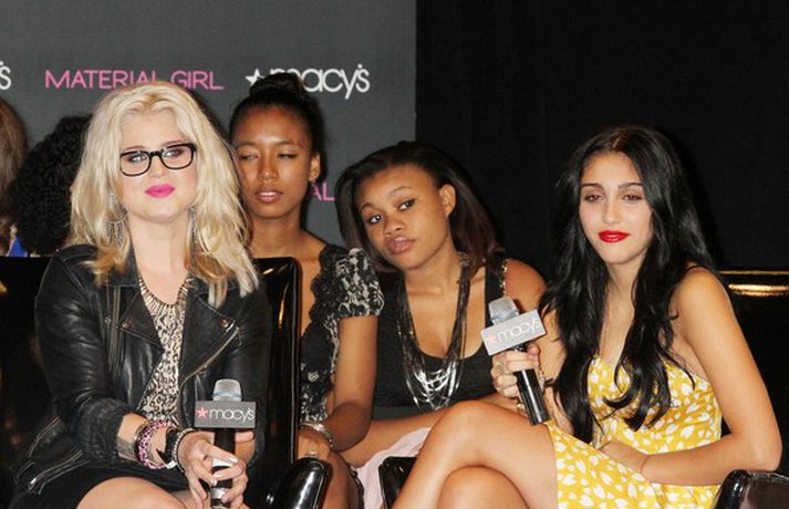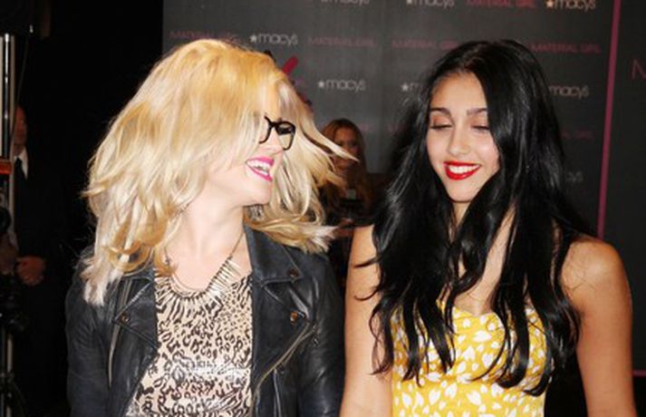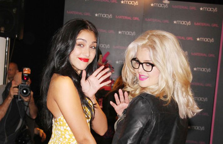 Dóttir Madonnu, Lourdes Leon, 14 ára, og Kelly Osbourne fögnuðu eins árs afmæli fatamerkisins Material Girl sem hefur heldur betur slegið í gegn í Macy's verslunum í Bandaríkjunum. Umrædd fatalína, sem er í eigu Madonnu, er ætluð 14-24 ára konum. Eins og sjá má á myndunum er Lourdes nauðalík móður sinni.Komdu með okkur á Lion King í 3D á föstudaginn.