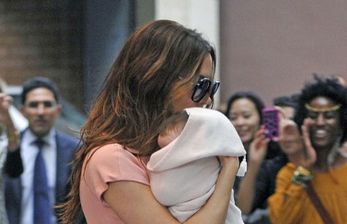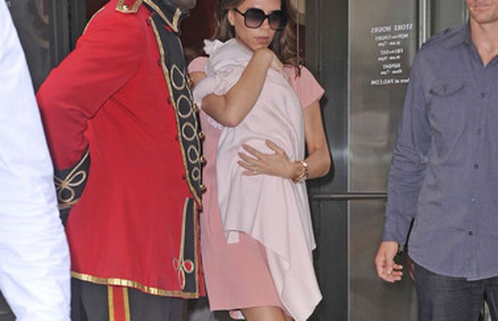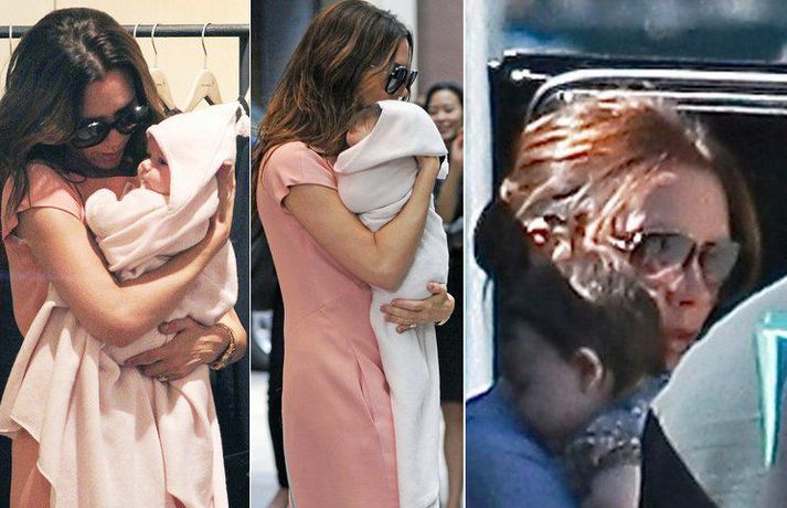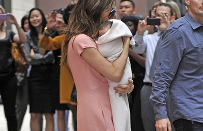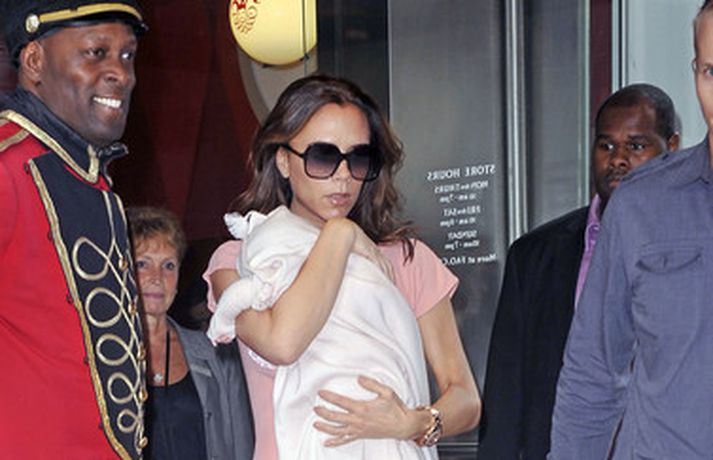 Victoria Beckham, 37 ára, hélt þéttingsfast utan um stúlkuna sína, Harper, sem fæddist 10. júlí, eins og sjá má í myndasafni. Mæðgurnar voru staddar á tískuvikunni í New York. Þá má einnig sjá þegar Victoria og eiginmaður hennar, David Beckham, 36 ára, sóttu fyrsta vegabréf stúlkunnar í gær.Ég meiddi mig á síðasta ári og það tekur sinn toll fyrir líkamann. Ég finn ennþá til. Ég hef fengið tilboð um að spila í Evrópu en ég er mjög ánægður með að búa hér og spila.Góð heilsa skiptir öllu máli. Ég ætla að sparka fótbolta með börnunum mínum næstu tíu árin, sagði David í viðtali við New York Times.