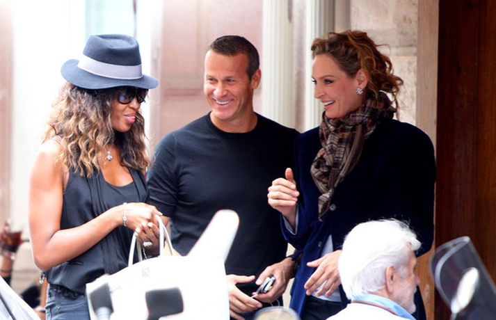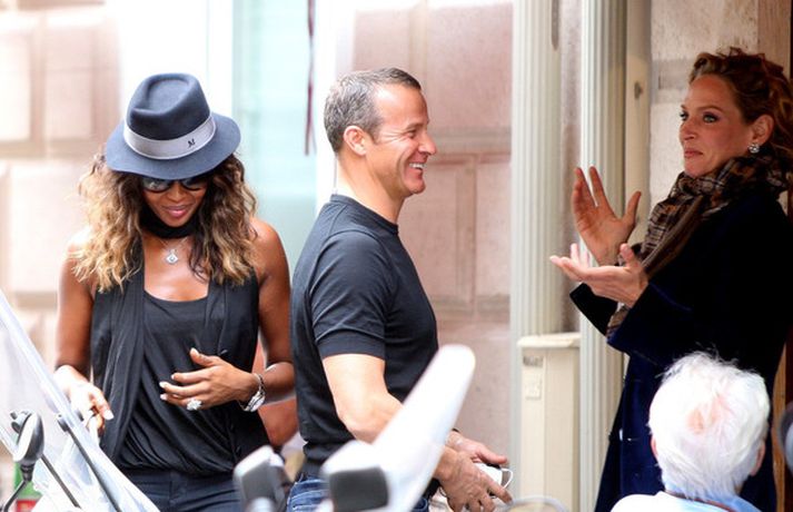Leikkonan Uma Thurman og unnusti hennar Arpad Busson eru stödd í París á tískuviku í borginni og það sama má segja um fyrirsætuna Naomi Campbell og unnusta hennar, rússneska milljónamæringinn Vladislav Doronin. Vinkonurnar föðmuðu hvor aðra þegar þær hittust fyrir tilviljun á kaffihúsi í gær eins og sjá má í myndasafni.