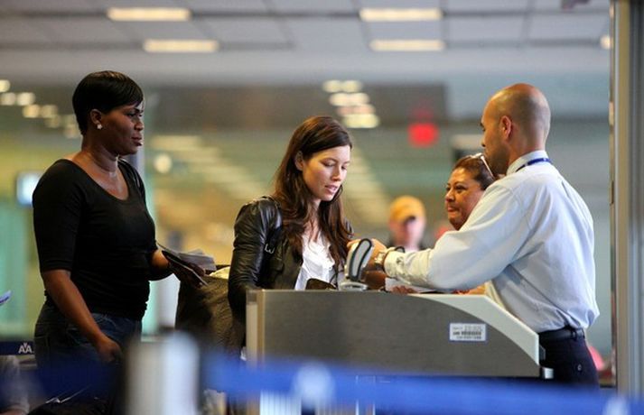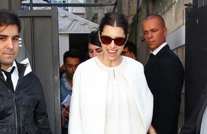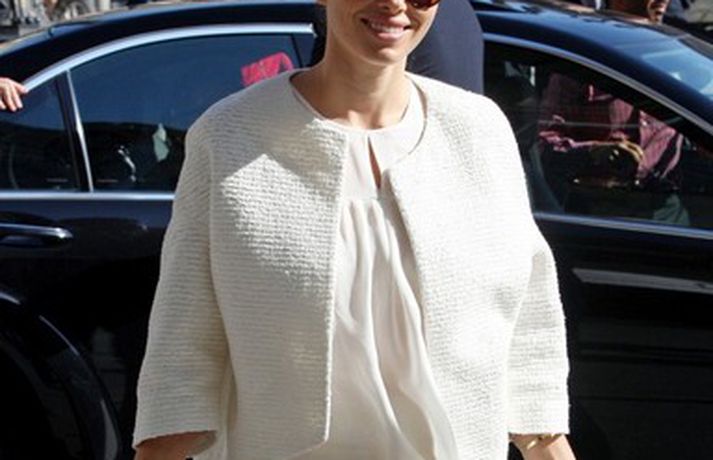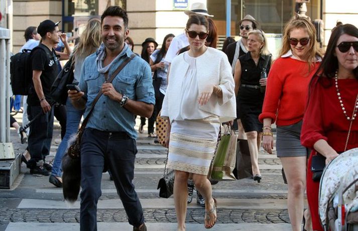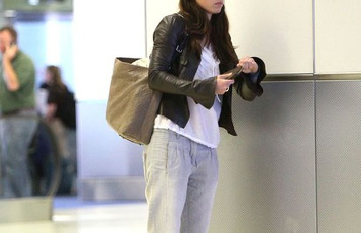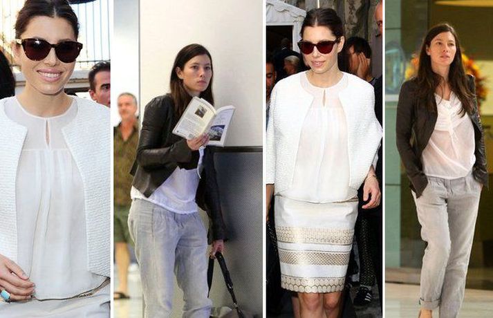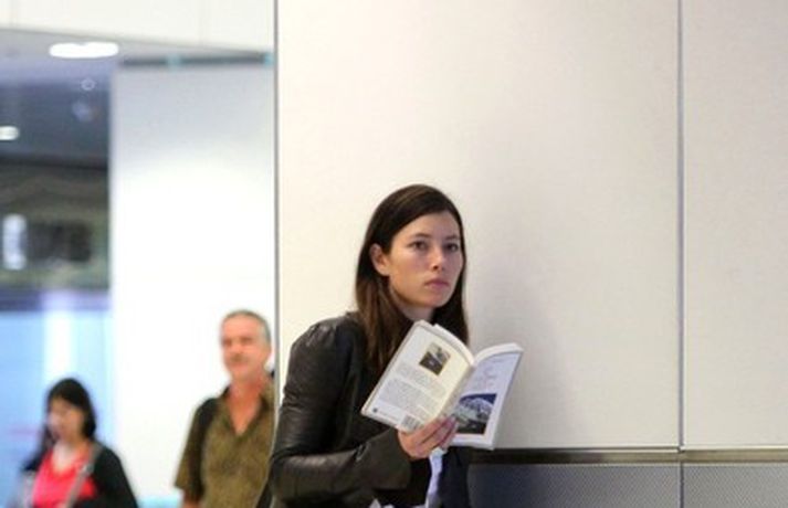 Leikkonan Jessica Biel, 29 ára, var mynduð á flugvelli ein síns liðs á leiðinni í karabíska hafið. Hún gluggaði í bók á flugvellinum og sendi nokkur sms á meðan hún beið eftir útkalli í vél. Þá var leikkonan vitni að vor- og sumarlínu Giambattista Valli á tískuvikunni í París. Eins og sjá má á myndunum var Jessica ómáluð í andliti í lágbotna skóm á flugvellinum en uppáklædd með sólgleraugu á nefinu í París.