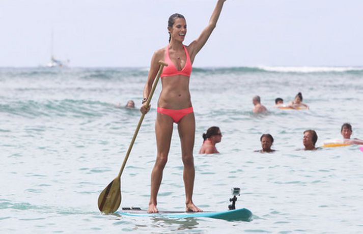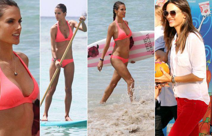 Brasilísku ofurfyrirsætunni Alessöndru Ambrosio, 30 ára, leiðist ekki í vinnunni. Það sést greinilega á myndunum sem voru teknar af henni busla og leika sér á bretti í Honolulu á Hawaii í vikunni. Um var að ræða myndatöku fyrir undirfataframleiðandann Victoria's Secret. Þá má sjá fyrirsætuna með eiginmanni sínum og dóttur versla hrekkjavökudót.Tarot á Visi