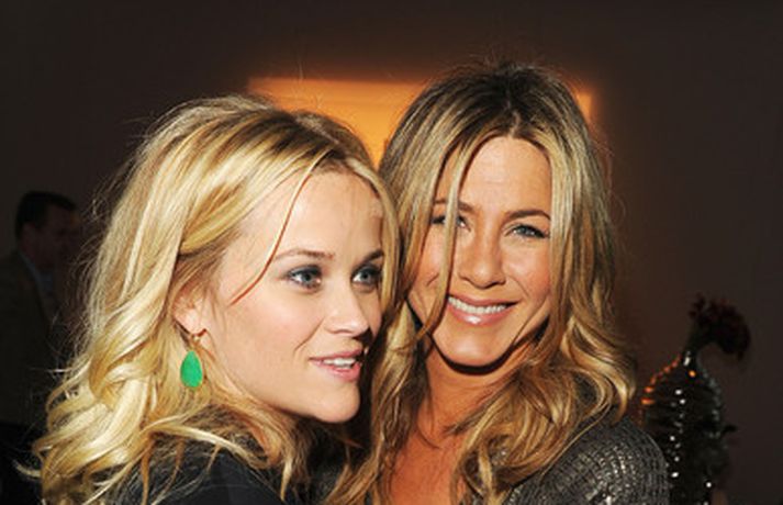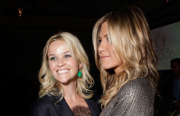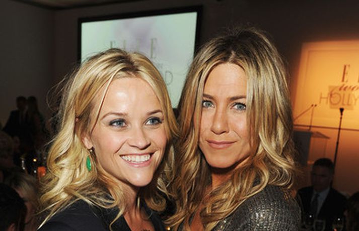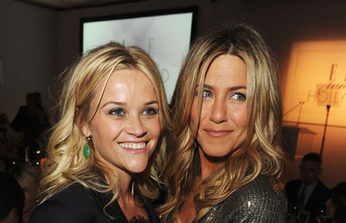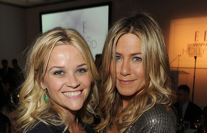Leikkonan Jennifer Aniston, 42 ára, var mynduð á Four Seasons hótelinu í Beverly Hills klædd í silfraðan Kaufman Franco kjól sem var áberandi fleginn að framan og aftan eins og sjá má á myndunum. Um var að ræða viðburð á vegum Elle tímaritsins sem var tileinkaður konum í Hollywood. Þá má sjá að vel fór á með Jennifer og leikkonunni Reese Witherspoon.Dragðu tarotspil dagsins!