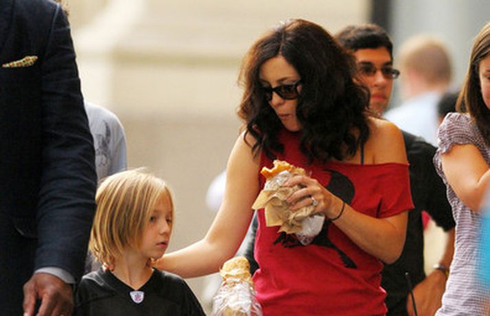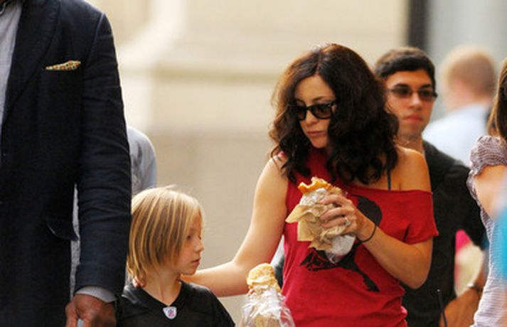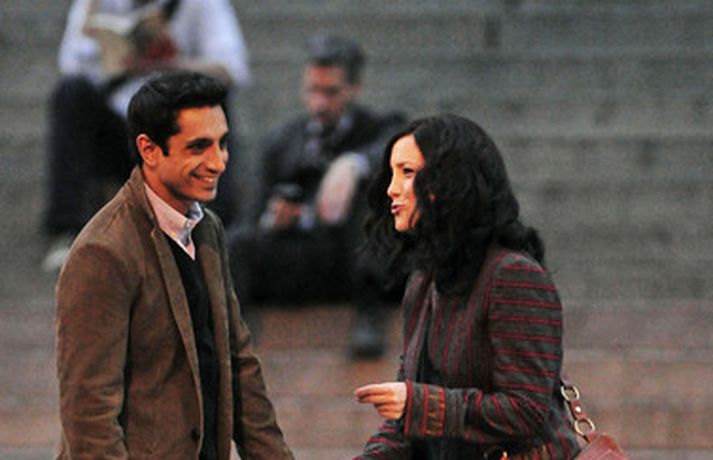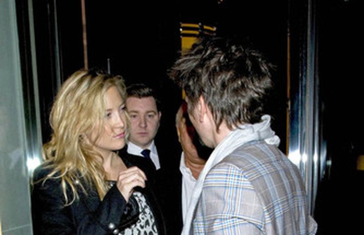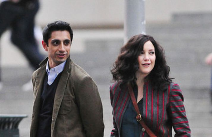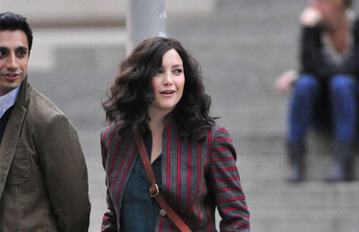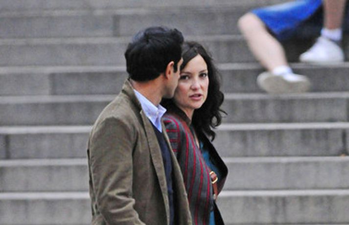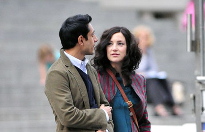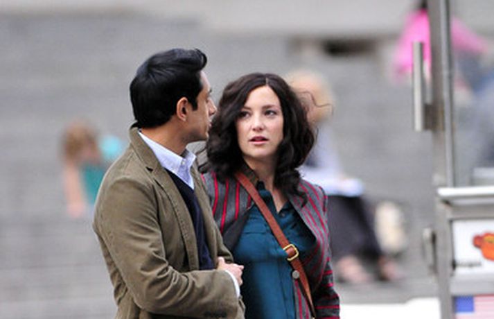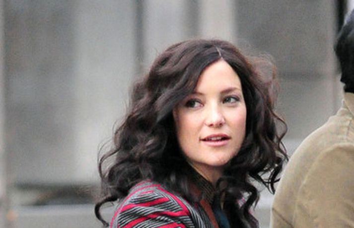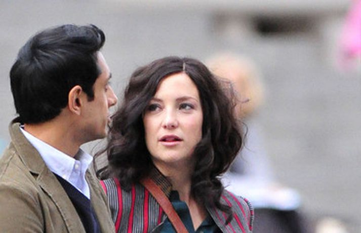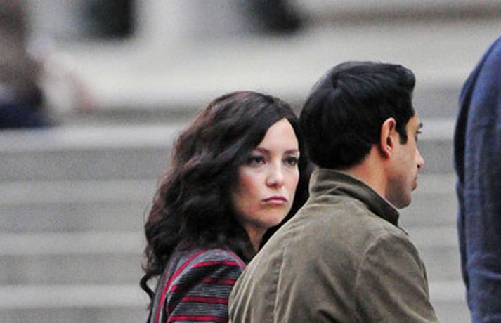 Ljóshærða leikkonan Kate Hudson, 32 ára, er orðin dökkhærð eins og sjá má á myndunum sem teknar voru af henni í New York við tökur á spennumyndinni The Reluctant Fundamentalist. Í myndasafni má einnig sjá Kate með eldri syni sínum, Ryder, og unnustanum, Matt Bellamy, í góðum fíling. Liev Schreiber og Keifer Sutherland fara einnig með hlutverk í fyrrnefndri kvikmynd.